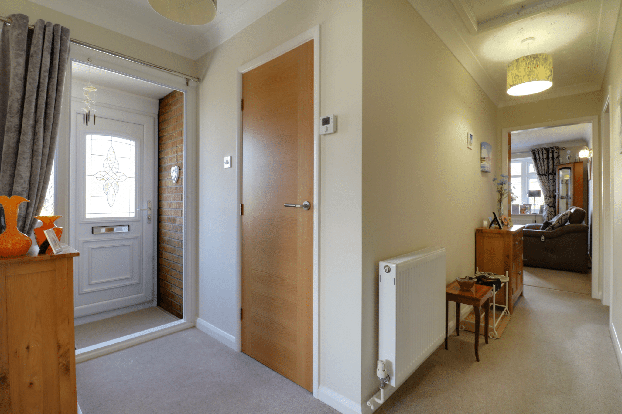 Has a built-in cloaks cupboard, a wall mounted thermostatic control for the heating, loft access and attractive oak doors leads through to;