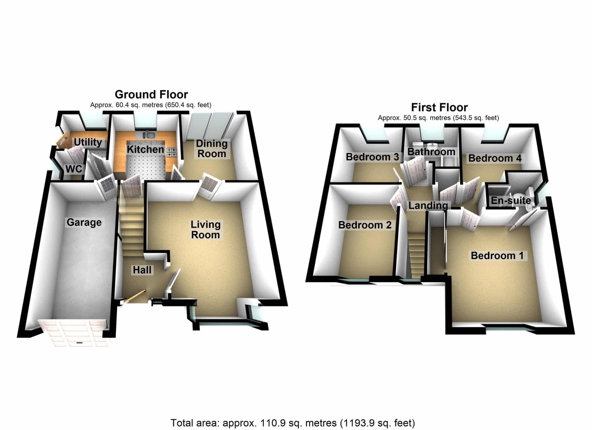Cloakroom 3' 8" x 4' 4" (1.12m x 1.32m)