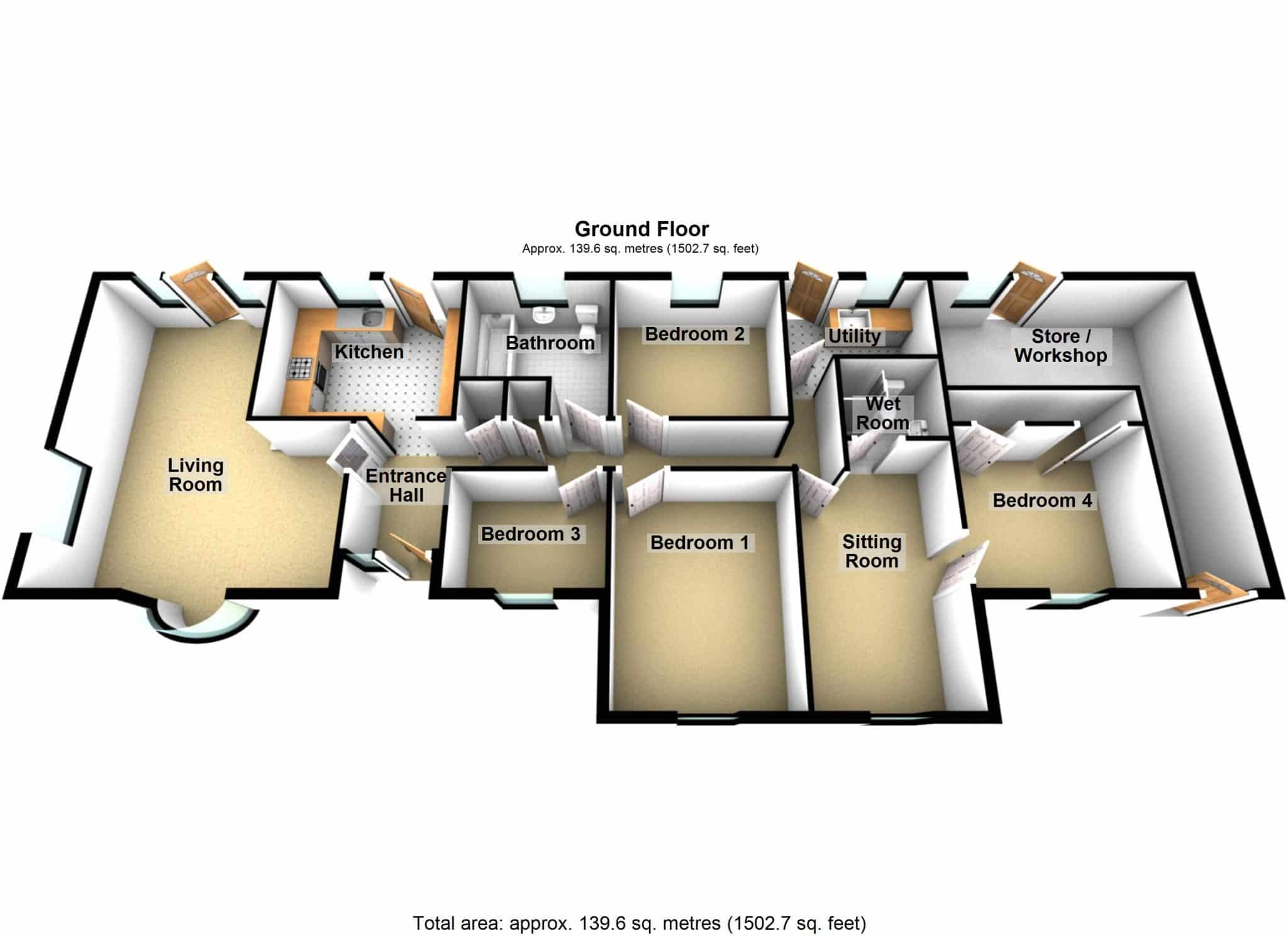 'The Rowans' is an deceptively spacious and versatile traditional detached bungalow peacefully set within the highly desirable village of Laughterton, occupying an extremely private double plot. The property offers bright and airy living space with scope for cosmetic updates along with ample options to extend if required and subject to consent with accommodation briefly comprising, central entrance hallway, L-shaped living room, fitted kitchen, 3 initial bedrooms with a family bathroom, an inner hallway leads to a useful utility room, front sitting room with a wet room and a 4th bedroom. Attached to the property is a spacious store/workshop. The front provides parking for numerous vehicles with surrounding gardens being principally lawned with mature borders providing excellent screening. Within the rear garden there is a range of outbuildings with the main studio allowing an excellent area for a home office. Finished with uPvc double glazing and a modern oil fired central heating system. Viewing comes with the agents highest of recommendations. View via our Gainsborough office.