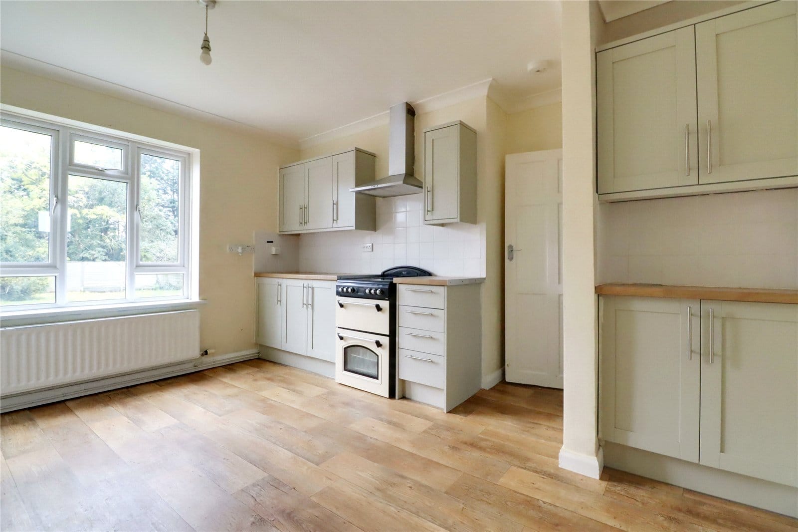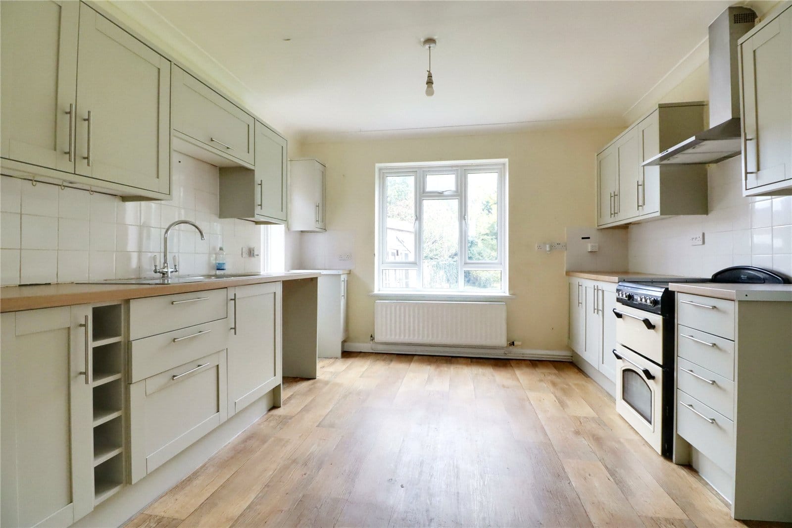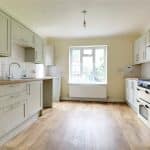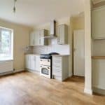 Enjoys a dual aspect with rear and side uPVC double glazed windows. The kitchen enjoys an attractive range of shaker style furniture with brushed aluminium style pull handles, butcher block worktop with tiled splashbacks incorporates a single stainless steel sink unit with block mixer tap, space for a cooker with overhead canopied extractor, cushion flooding of a wood effect, open access through to;