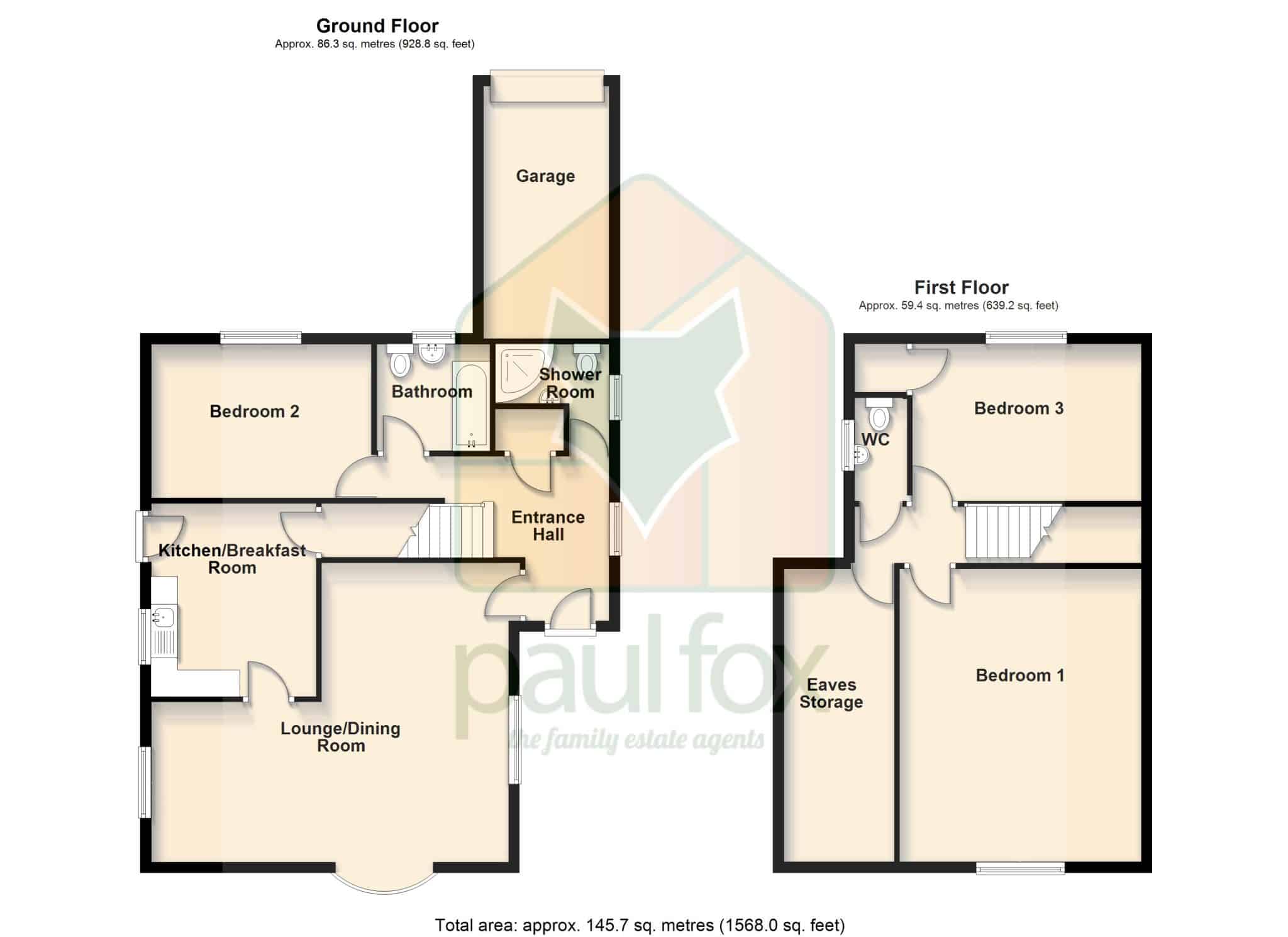 The first floor offers two further double bedrooms, eaves storage and a separate WC.