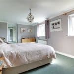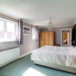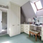With a front Velux skylight, wall to ceiling coving, loft access and a range of fitted wardrobes with matching drawers and dressing area and a further internal door allows access off to;