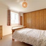 With front uPVC double glazed window, a bank of fitted pine wardrobes and wall to ceiling coving.