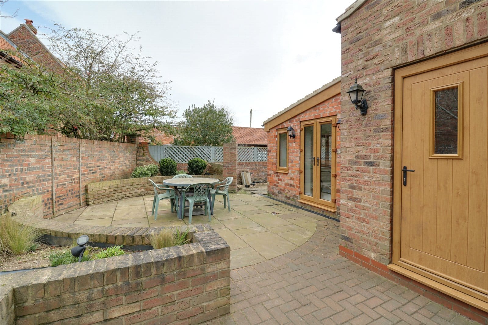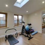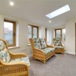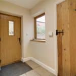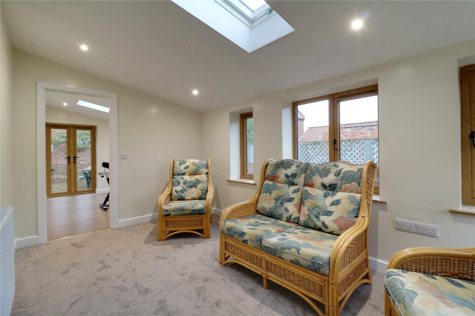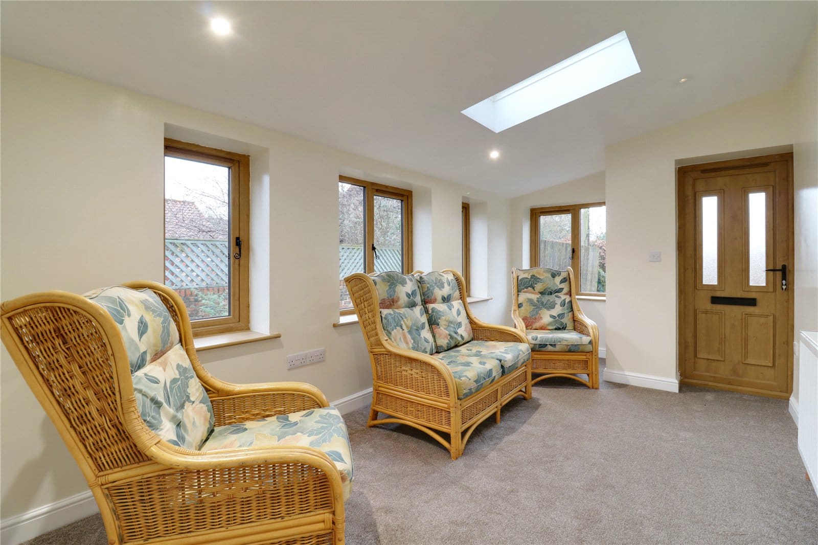 With Velux skylight, surrounding uPVC double glazed windows and a front composite wood grain effect door with frosted glazing.