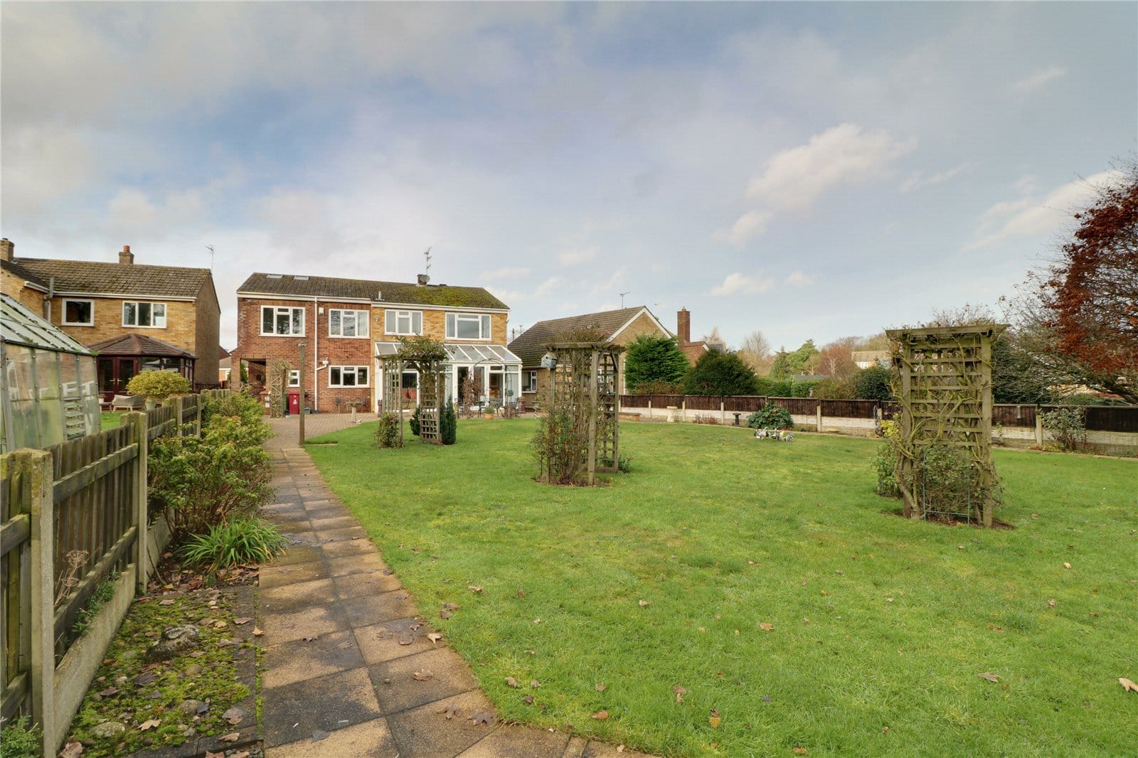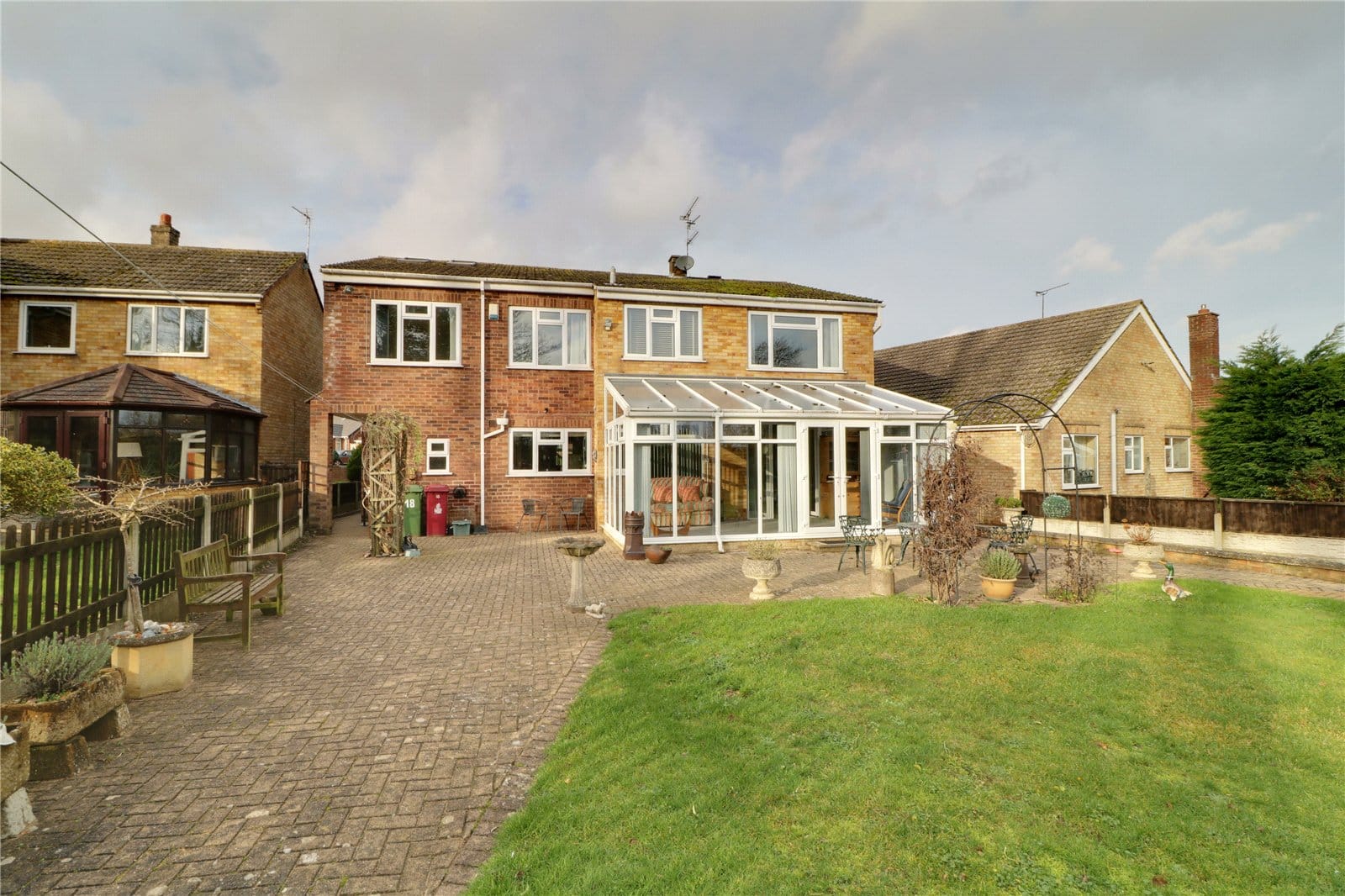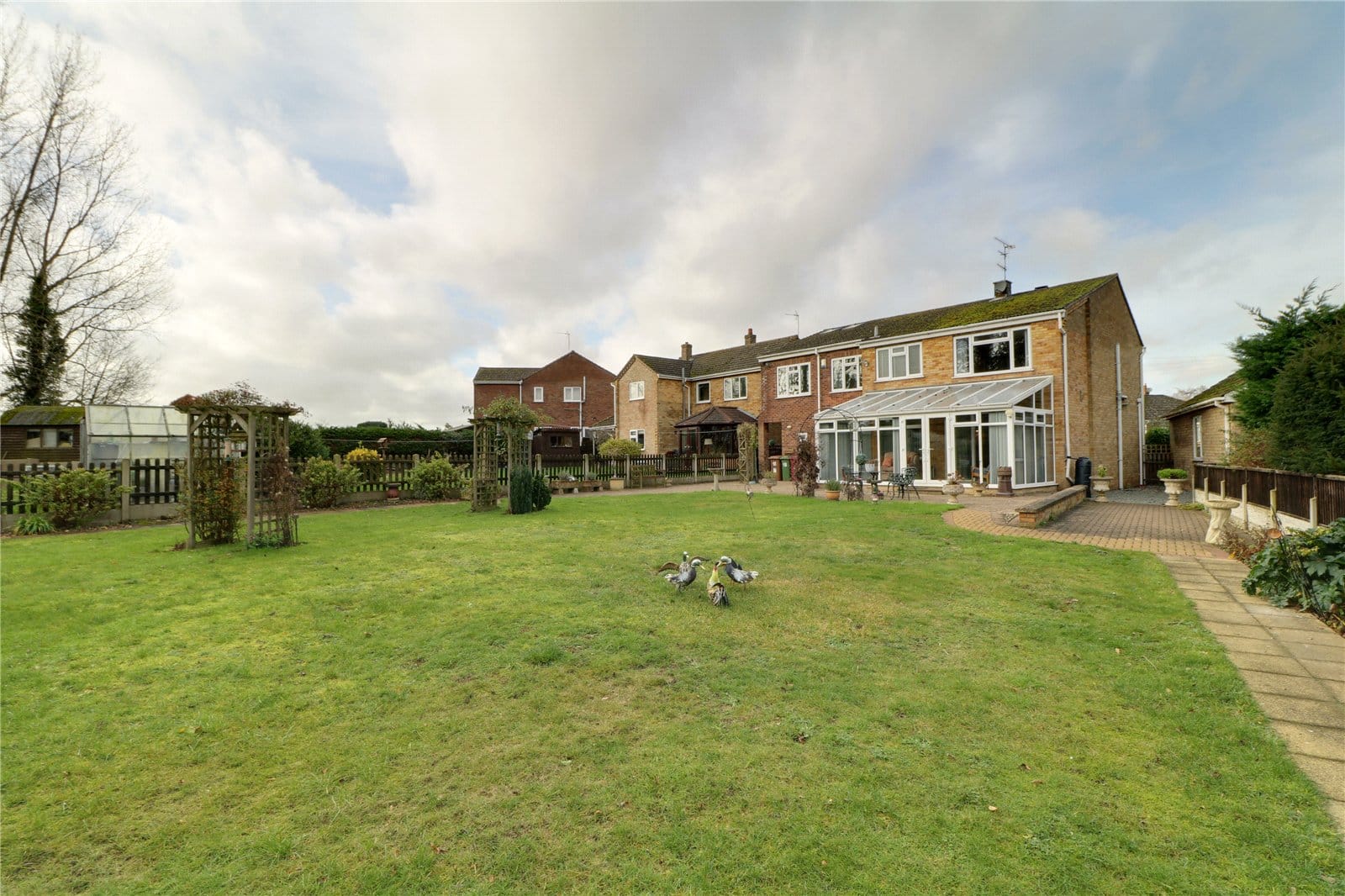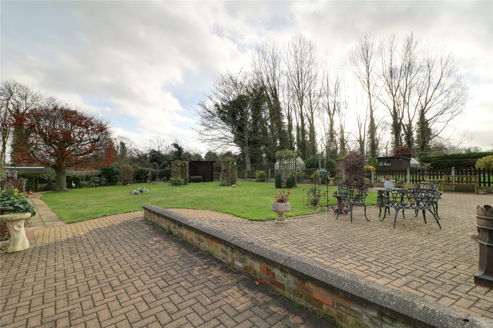The property benefits from large mature plot with the front being principally lawned behind a brick boundary wall with double opening swan necked gates leading onto a substantial block paved driveway allowing extensive parking for numerous vehicles and leading directly to the integral garage. Access to either side leads to a large private garden being principally laid to lawn with a block paved seating area and perimeter pathway with adjoining borders surrounding the boundary.