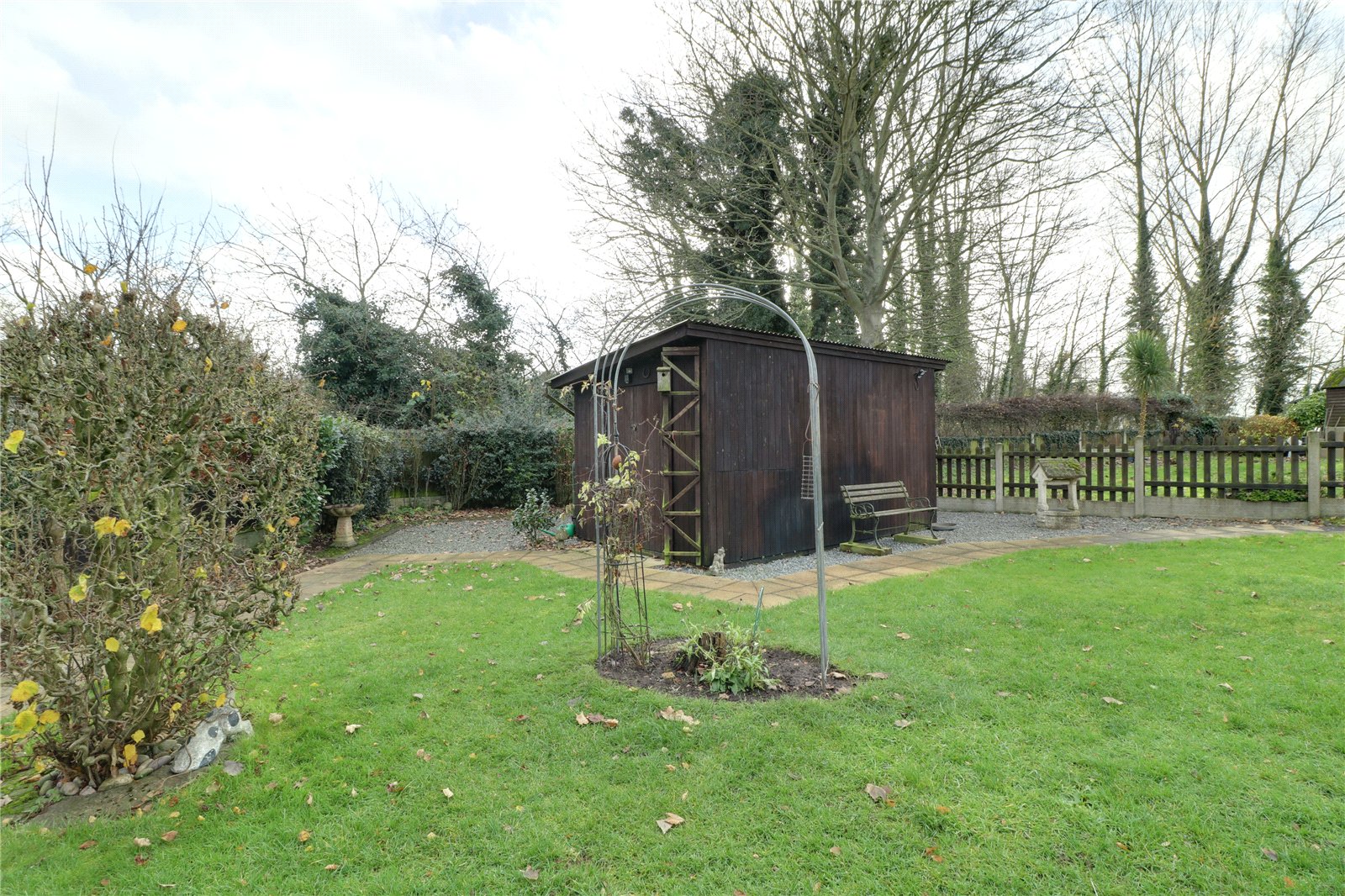 The property benefits from an integral single garage and timber workshop/store shed within the garden.