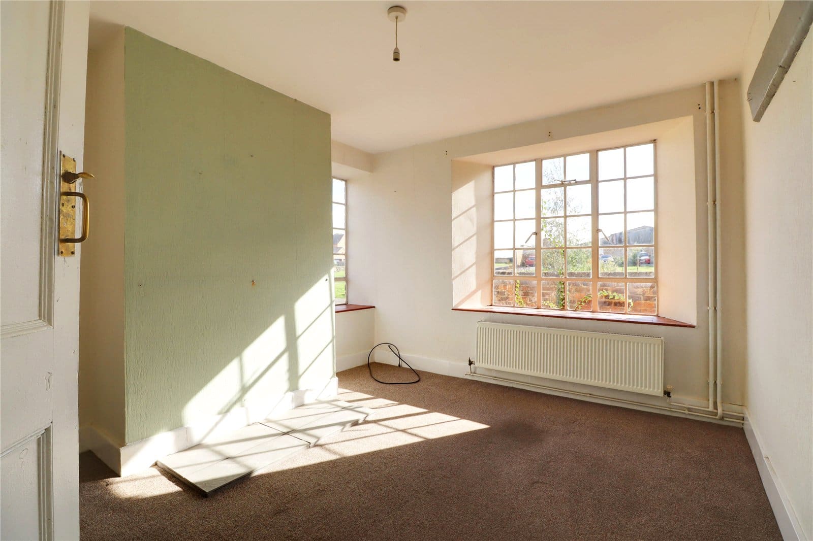 Enjoying a dual aspect with front and side metal casement single glazed windows.