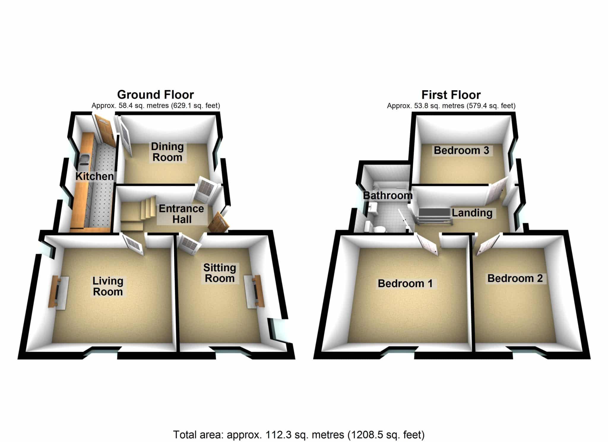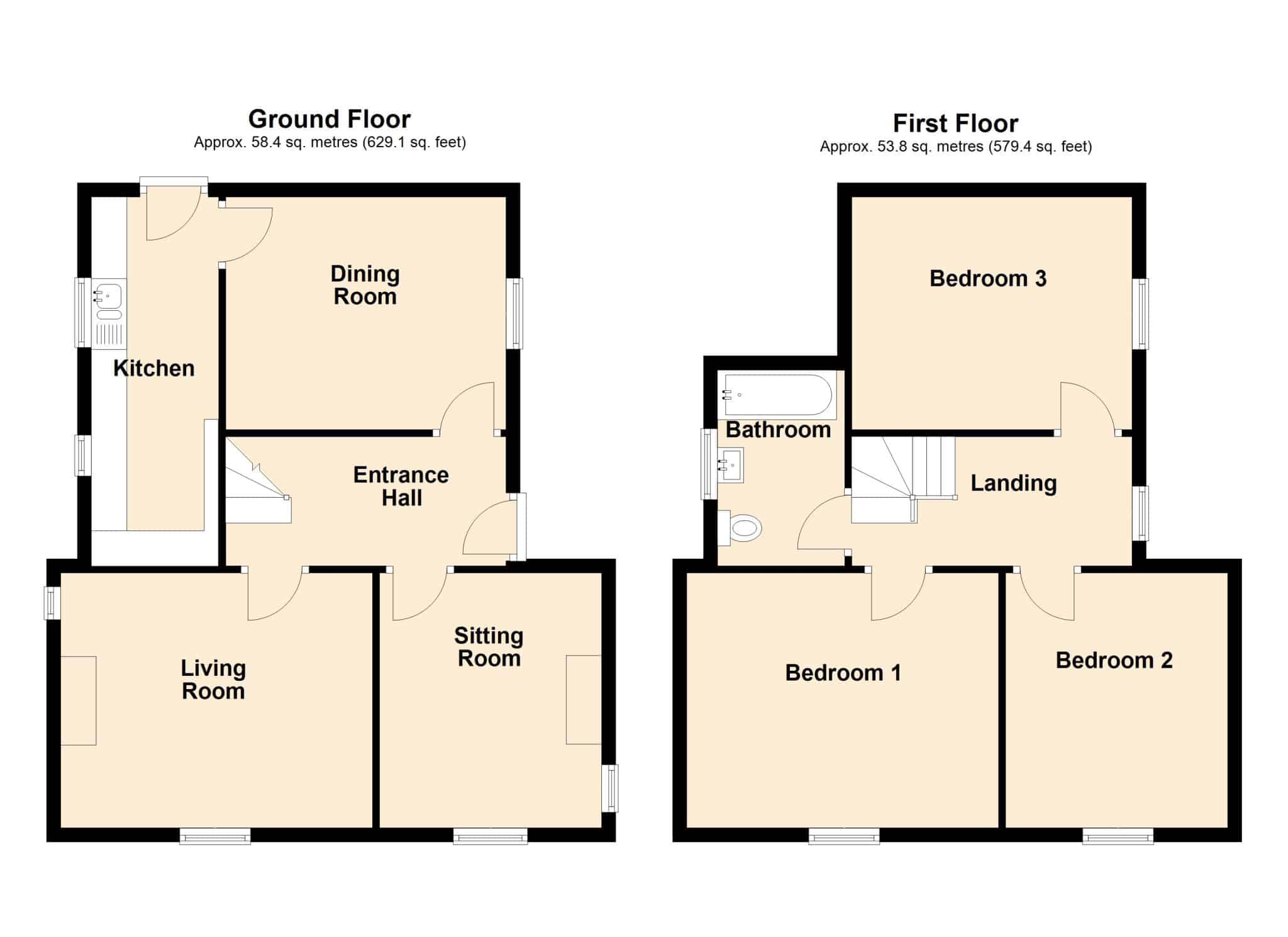 The property requires a scheme of improvements and updates yet provides excellent scope. The accommodation comprises, central entrance hallway, front living room and separate sitting room, formal dining room leading to a fitted kitchen. The first floor has a central landing leading to 3 double bedrooms and a family bathroom.