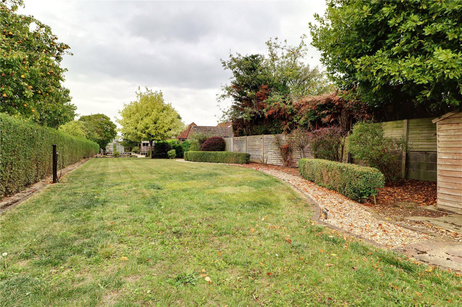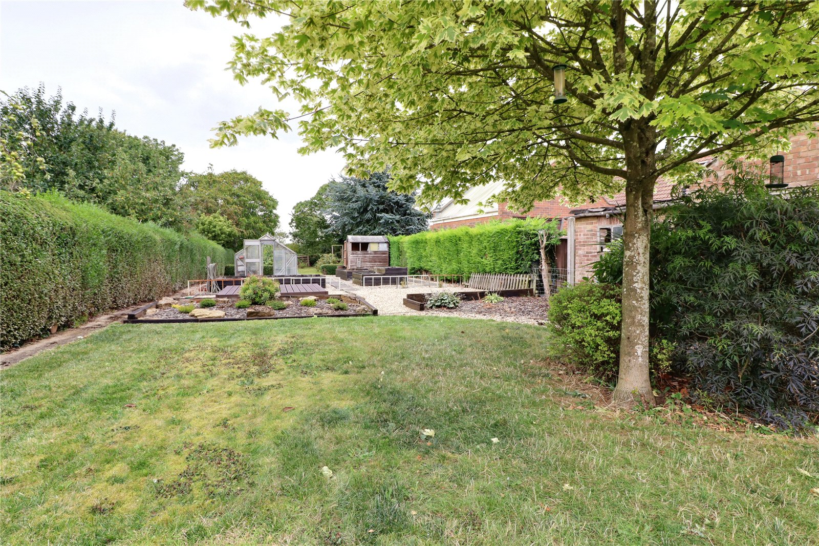 To the front the property sits well back from the road with vehicular access through a traditional five bar timber gate and onto a substantial pebbled driveway that allows parking for an excellent number of vehicles and allows direct access to the garaging. Adjoining gardens are laid to lawn with shrub borders and with a dividing picket fence allowing a pleasant seating area. The rear garden enjoys an initial landscaped patio with contrasting edging and gives easy access to the rear sitting room. The gardens themself come principally lawned and with an excellent size with shaped pebbled pathways, adjoining borders and leads to a raised vegetable garden with potting shed and greenhouse and decked seating area and with central flagged pathway leading to an orchard.
