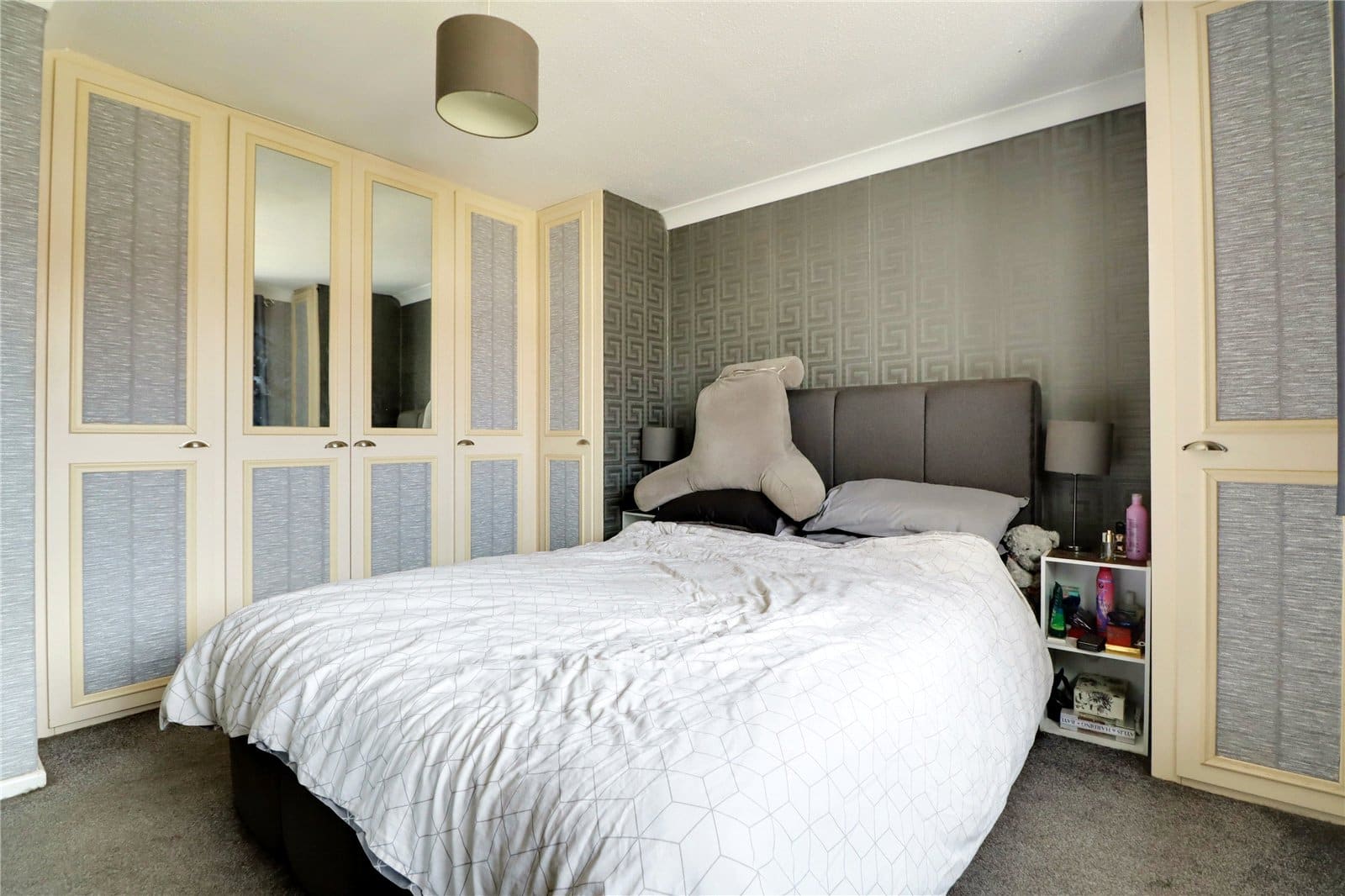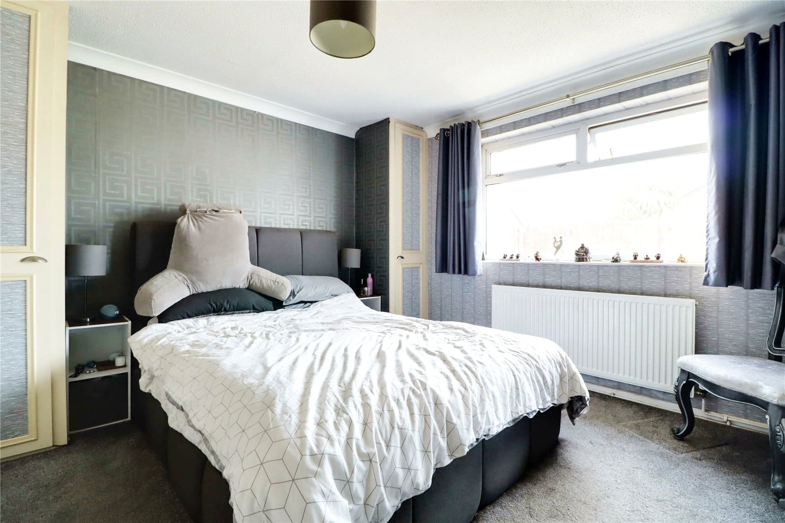 Rear uPVC double glazed window and fitted bedroom furniture.