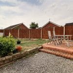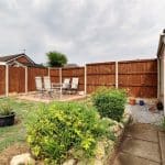 The property sits behind a timbe fence with raised pebbled gardens with planted shrubs and a side driveway allowing parking for a number of vehicles that leads to the garaging. The rear garden enjoys an excellent degree of privacy being lawned having a number of seating areas.