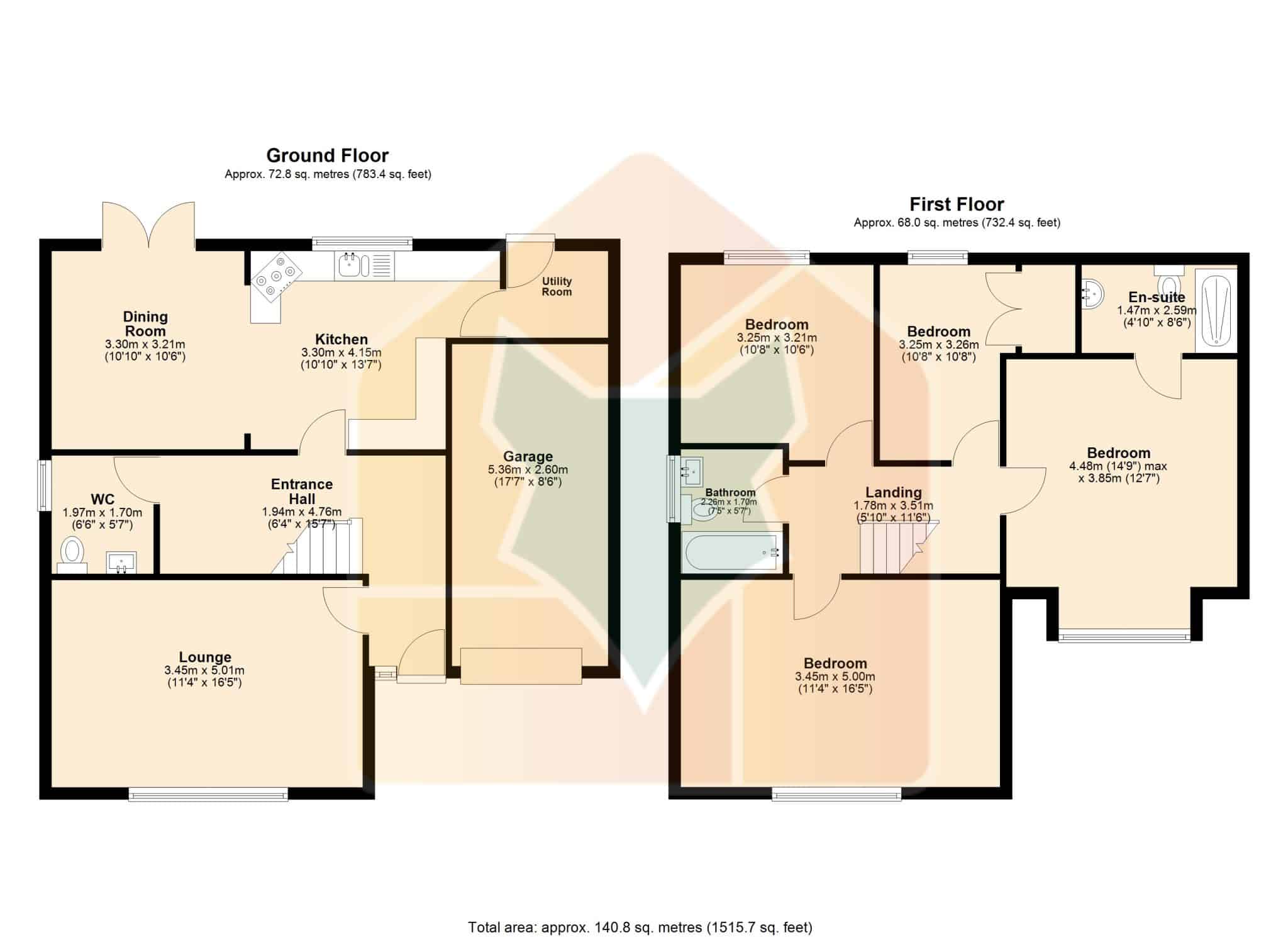 Front Double Bedroom 2 11' 4" x 16' 5" (3.45m x 5.00m)
