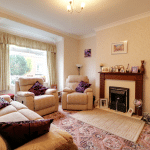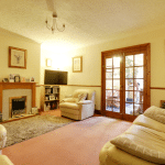 Dimensions: 3.9m x 4.74m. With wall to ceiling coving, dado railing, TV input, a further electric coal effect fire with a projective marbled hearth with matching backing and wood surround and mantel, an internal door that allows access through to spacious under the stairs storage cupboard and further twin hardwood glazed door which allows access through to;
