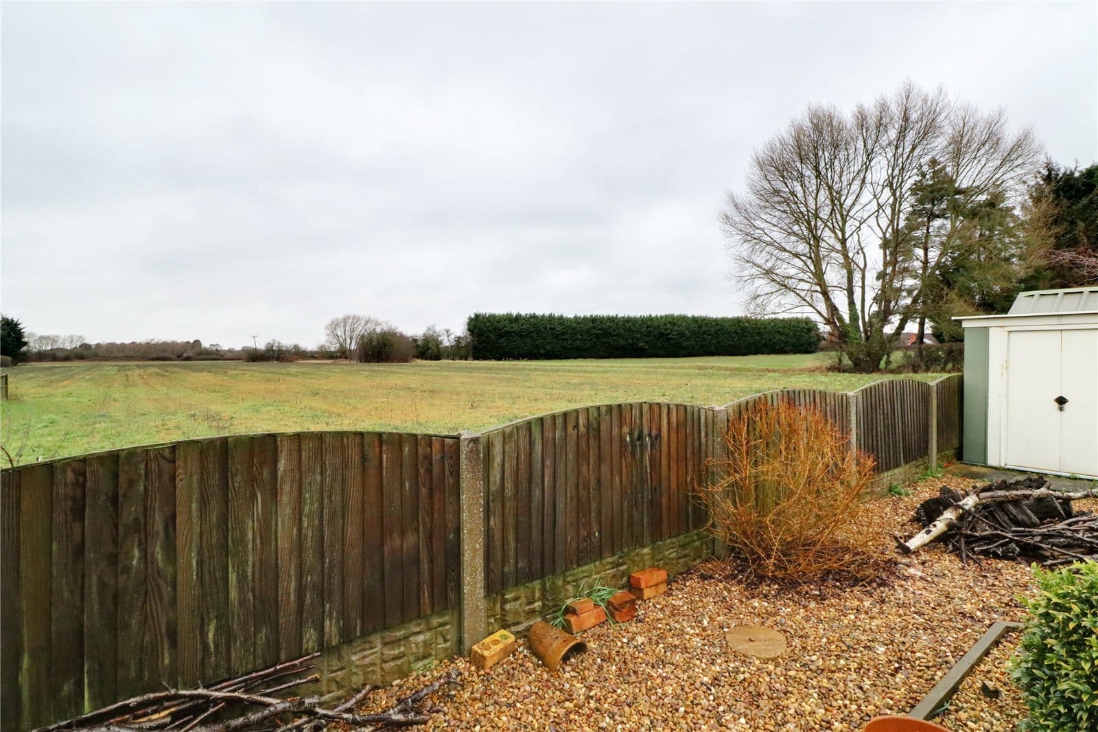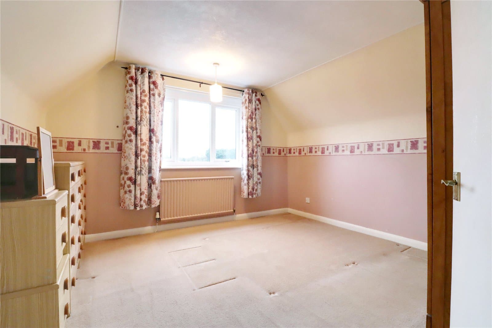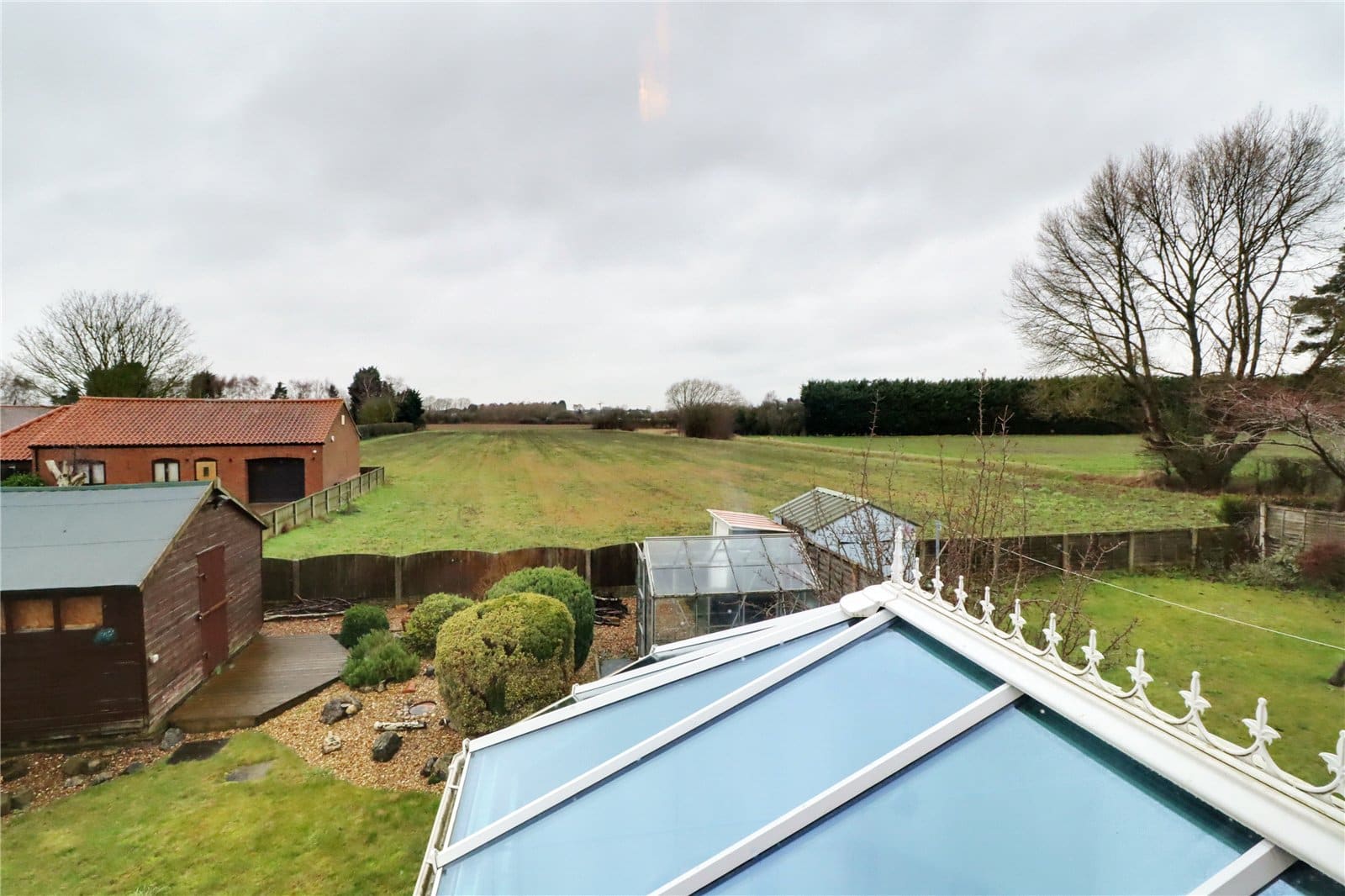 Rear uPVC double glazed window enjoying excellent open views and eaves storage.
