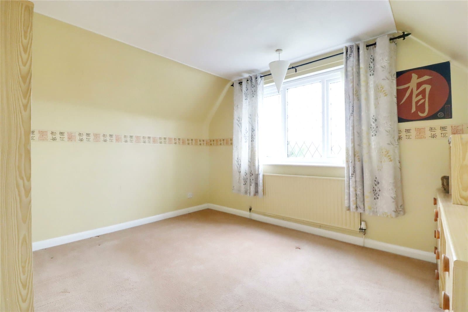 Front uPVC double glazed window and loft access.