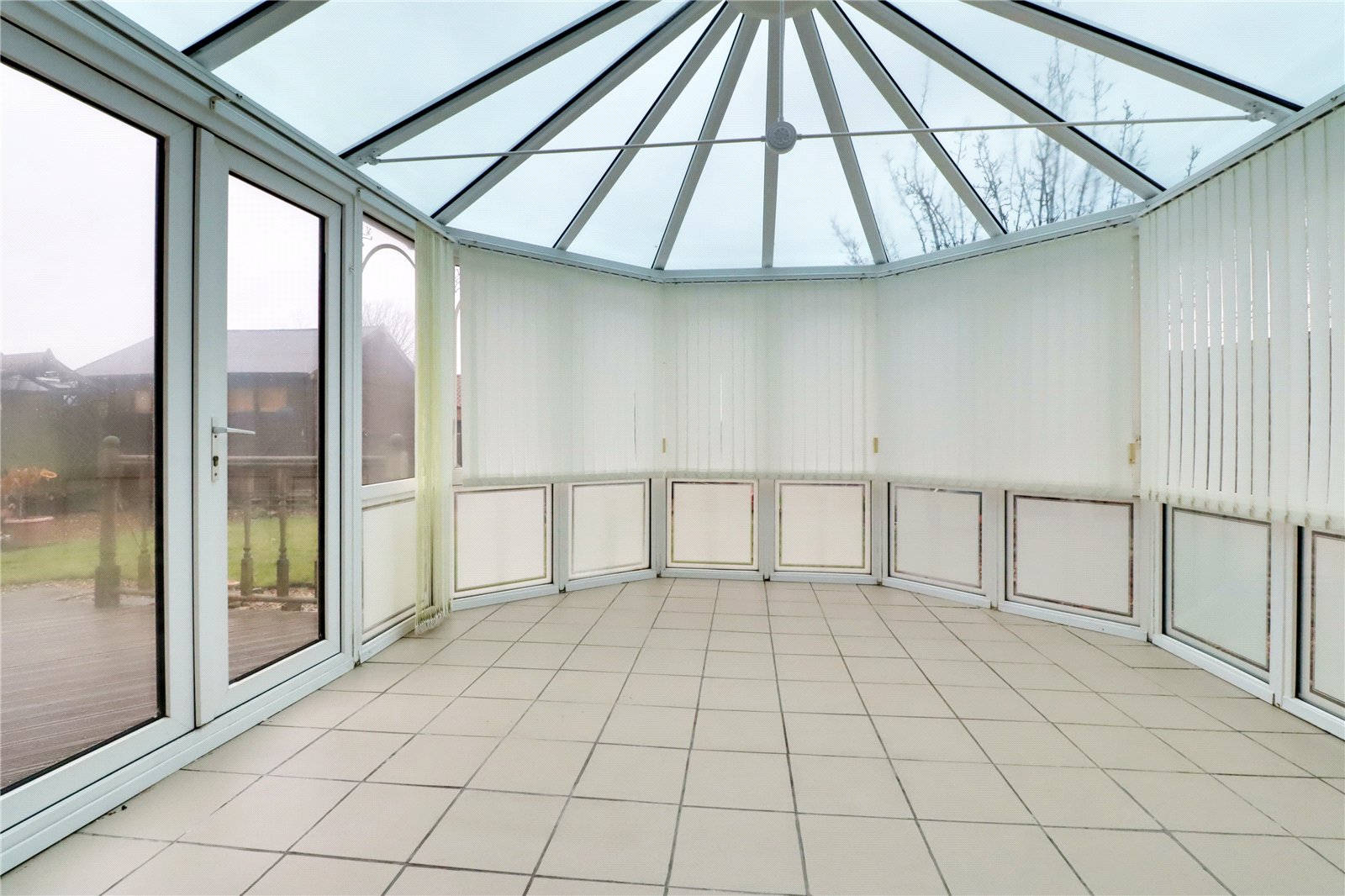 Being of uPVC construction, side doors leading through to the garden, raised hipped and pitched roof and tiled flooring.