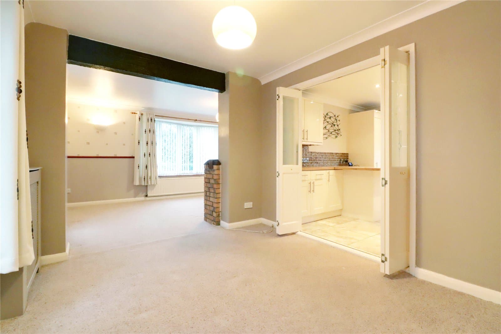 Side archtop uPVC double glazed and leaded window, wall to ceiling coving and internal folding doors leads through to;