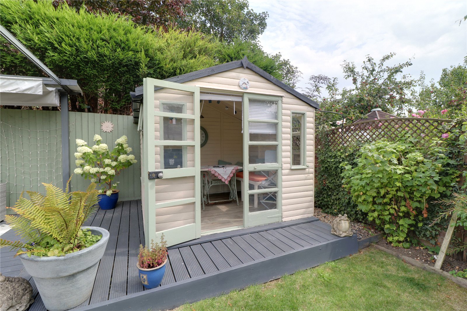 The property enjoys a large mature plot with the front having flagged steps to the front entrance door with adjoining planted borders and with an external power point ideal for a caravan or motorhome. The front driveway has been tarmac laid to allow parking for an excellent number of vehicles with continuation of driveway to the side leading to detached tandem garaging. The rear garden is fully enclosed and has an excellent degree of privacy and initially provides large Indian slate flagged seating areas on two levels which enjoys a brick built barbeque and matching raised flowerbeds and with access through to a generous lawned garden, raised planted hedge shrub borders and with the Indian slate flag work continuing to allow access to a rear seating area. At the rear of the garden there is a decked seating area with pergola and canopy over and houses a timber store shed and summer house.