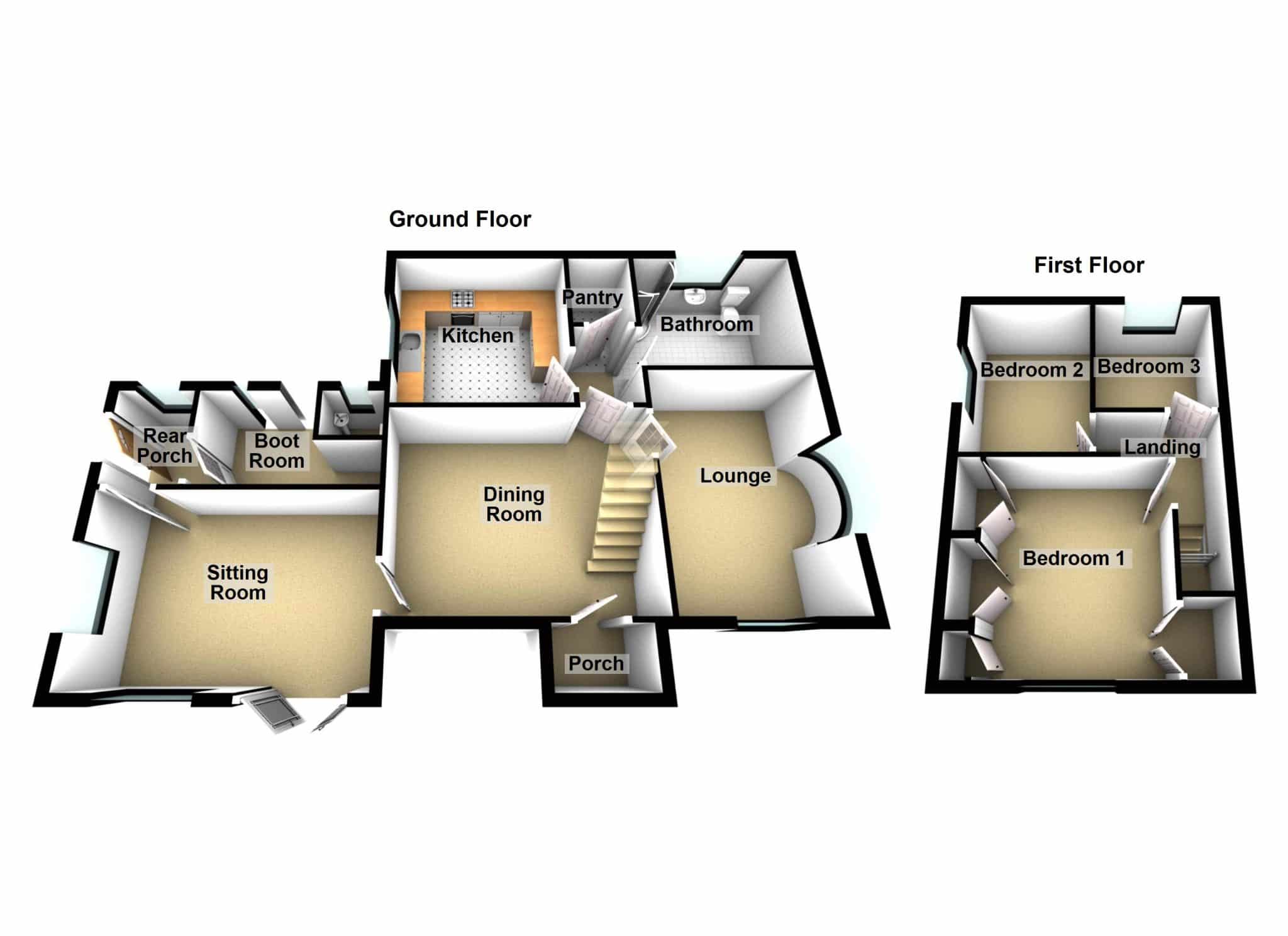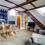 With a front uPVC double glazed window, a single flight staircase leads to the first floor accommodation with adjoining grabrail, adjoining beams to the ceiling, a feature multi fuel fire with oak beams, four single wall light points, TV input and an internal hardwood door allows access through to;