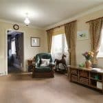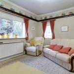 With a front bow uPVC double glazed window, a further side uPVC double glazed window, picture railing, wall to ceiling coving, a Calor gas coal effect fireplace and TV input.