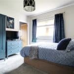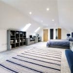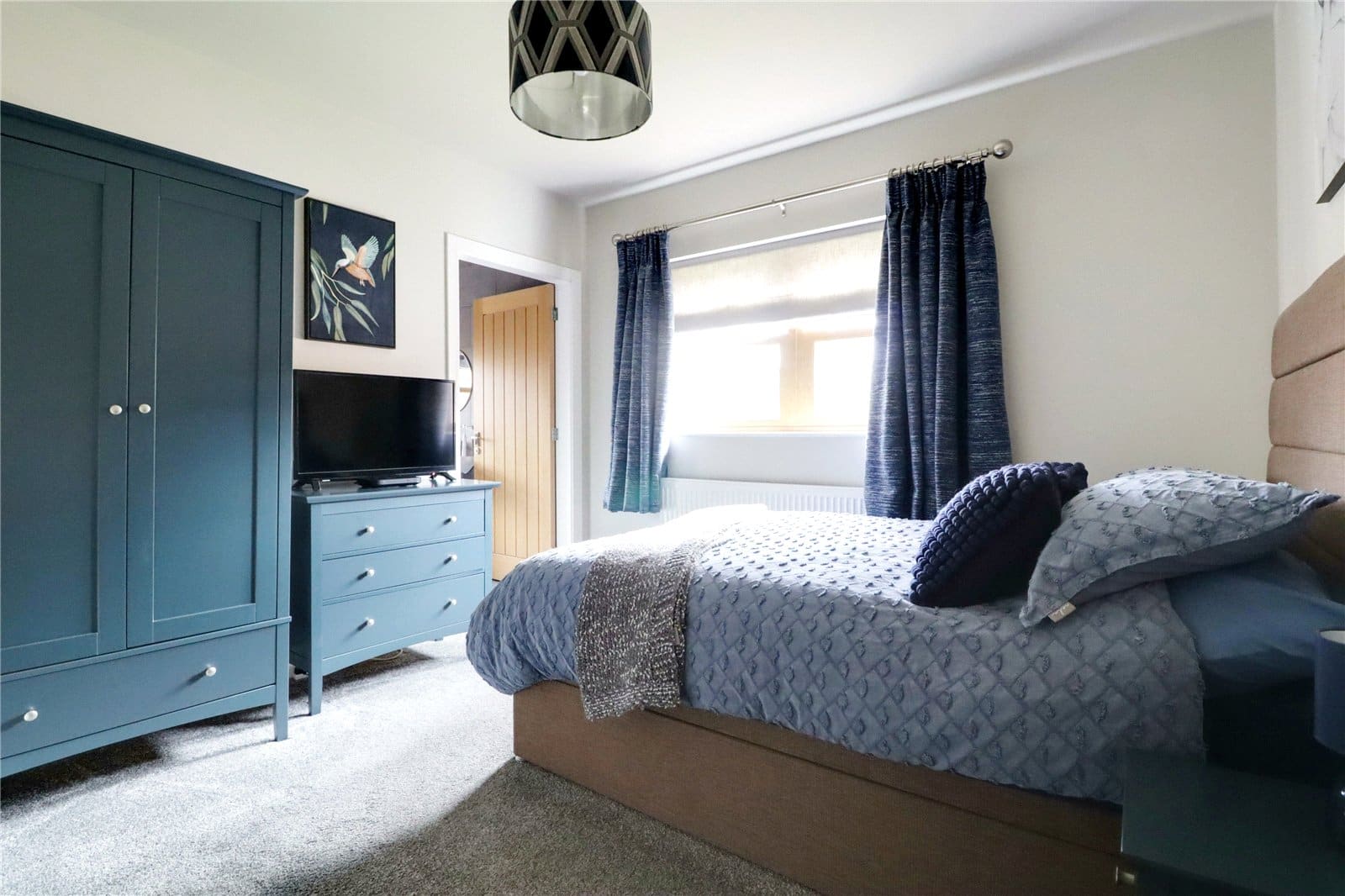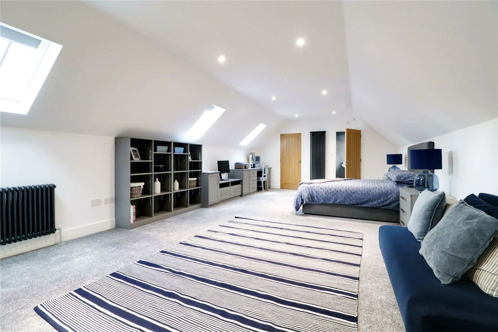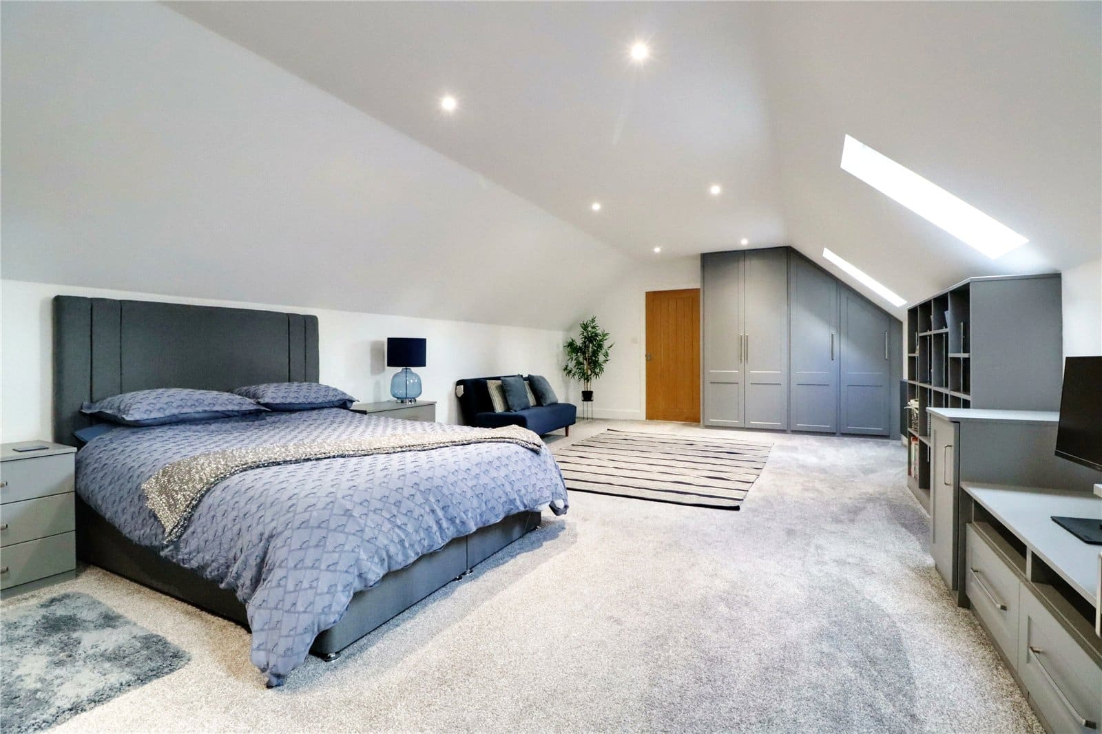 With two side double glazed Velux roof lights with fitted blinds, an extensive range of fitted bedroom furniture comprising a hanging wardrobes, vanity and desk units, stylish radiator, inset ceiling spotlights and doors through to;