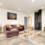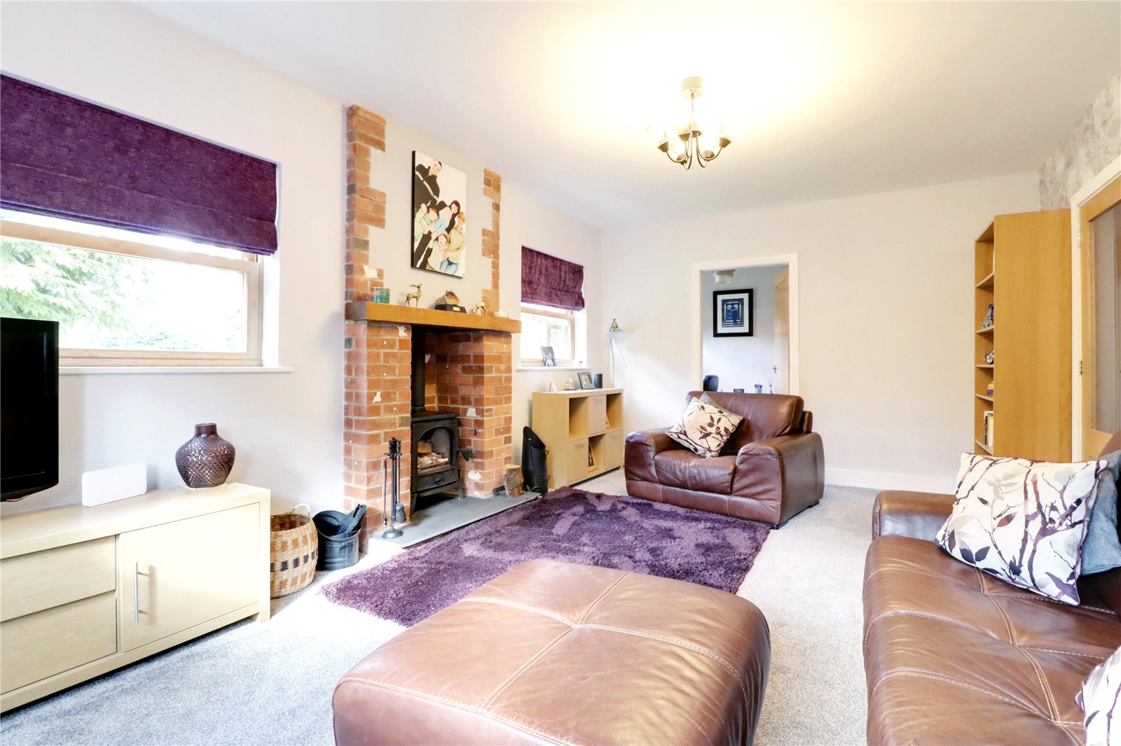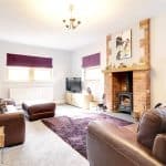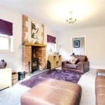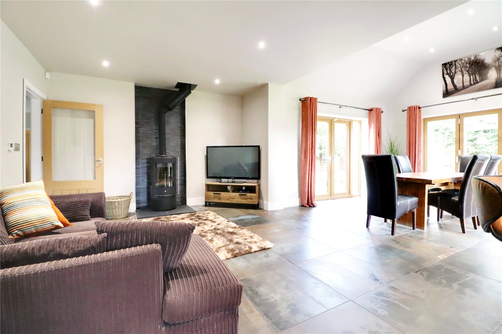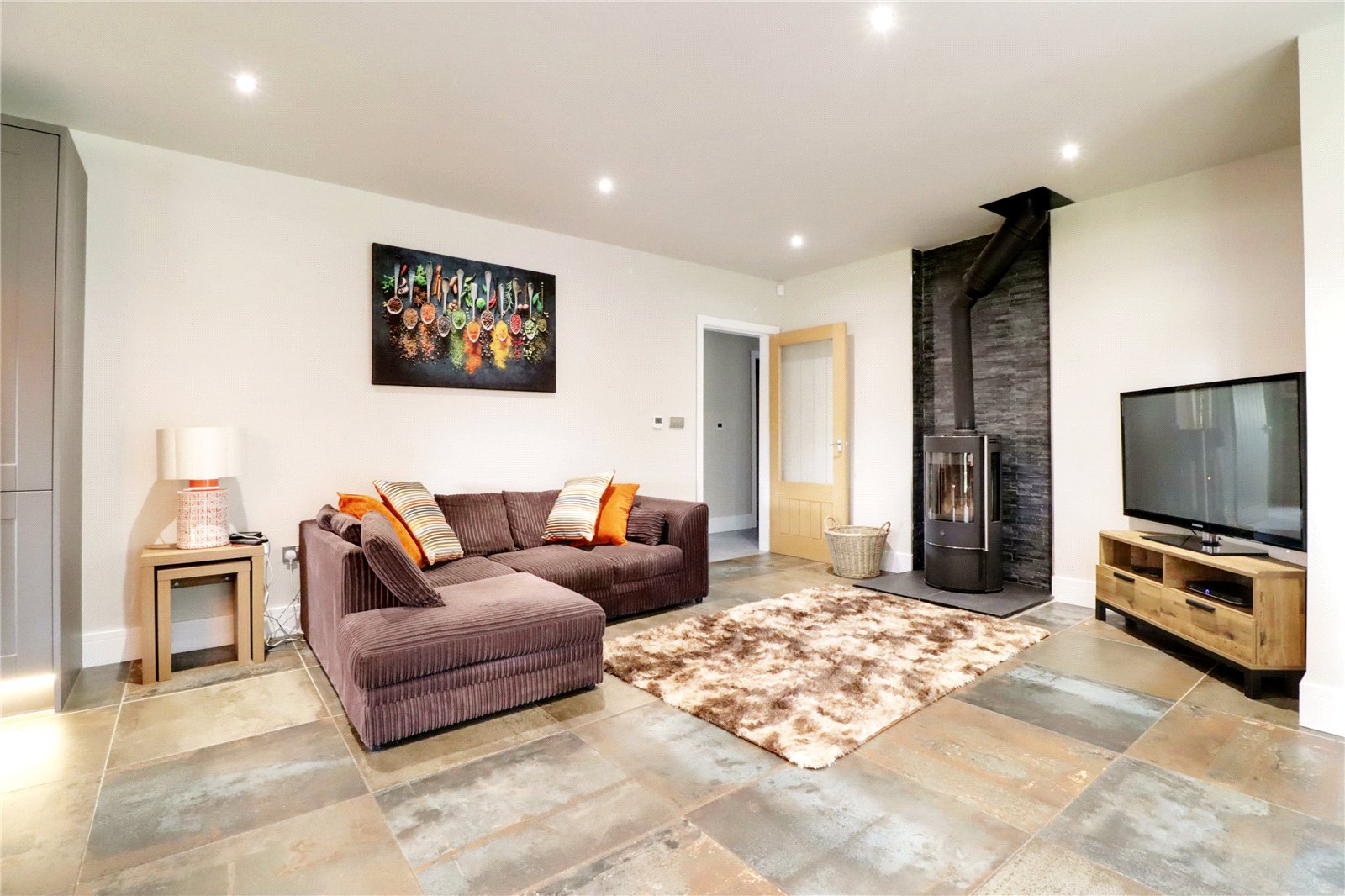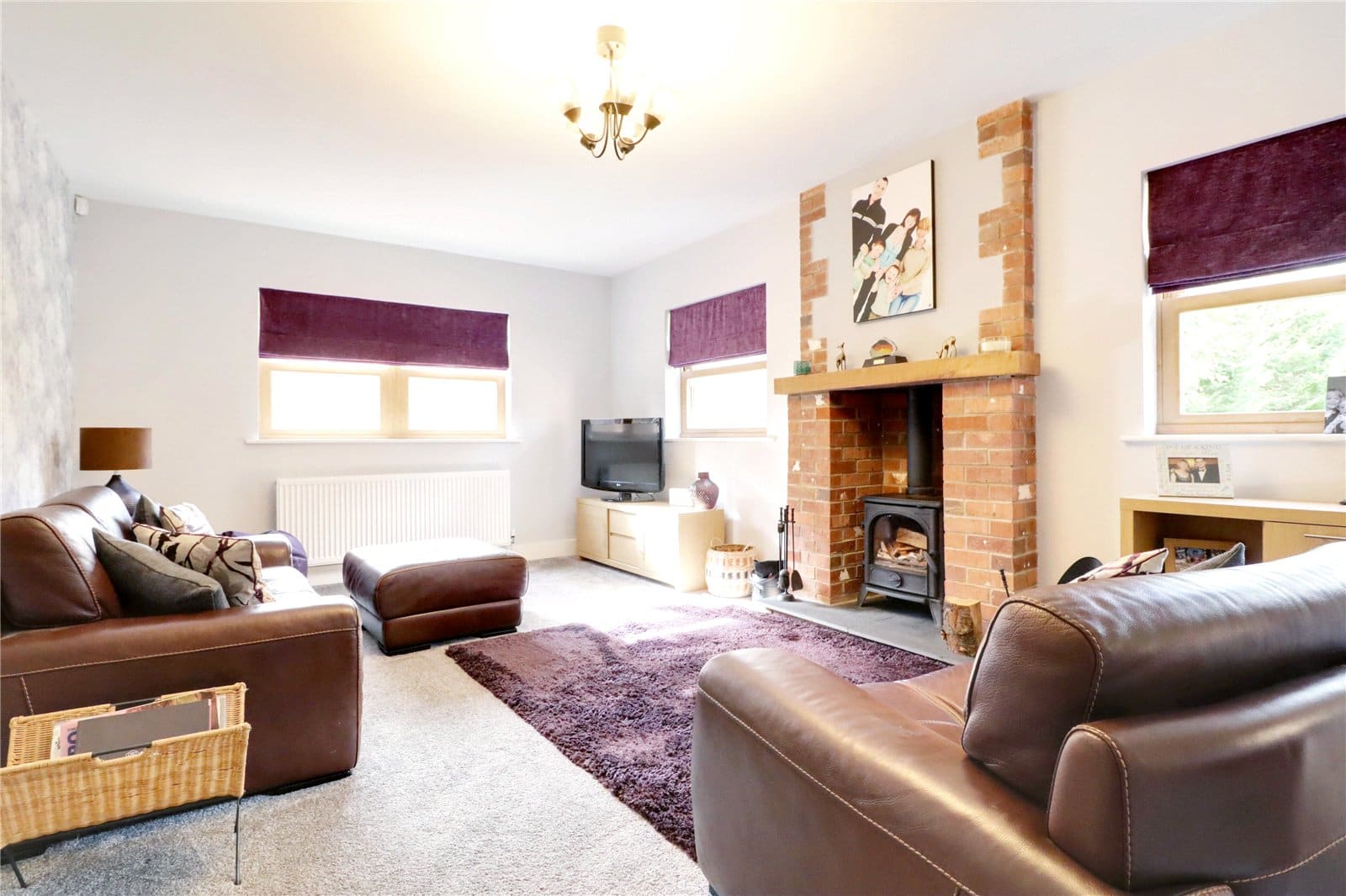Enjoying a dual aspect with surrounding vertical sliding uPVC double glazed sash windows, feature multi fuel cast iron stove on a raised slate hearth within a brick chamber and wooden beamed mantel, TV point and doors through to;