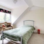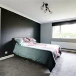 Broad side uPVC double glazed window, recessed fitted wardrobes and wall to ceiling coving.