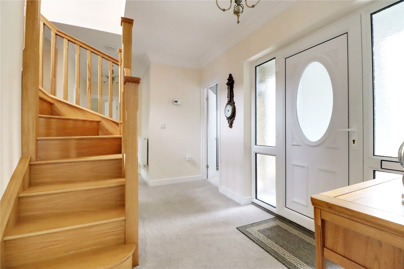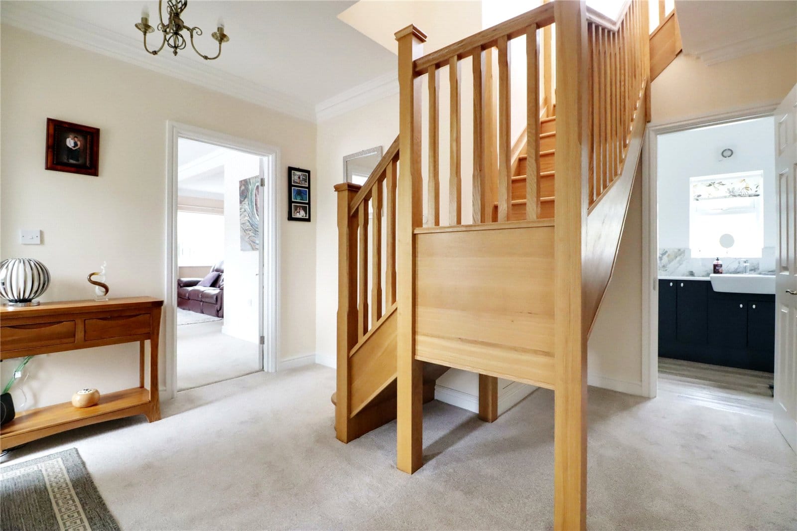 Enjoying a quality oak staircase allowing access to the first floor accommodation with open spell balustrading and squared newel posts with under the stairs storage, wall to ceiling coving and a wall mounted thermostatic control for the central heating.