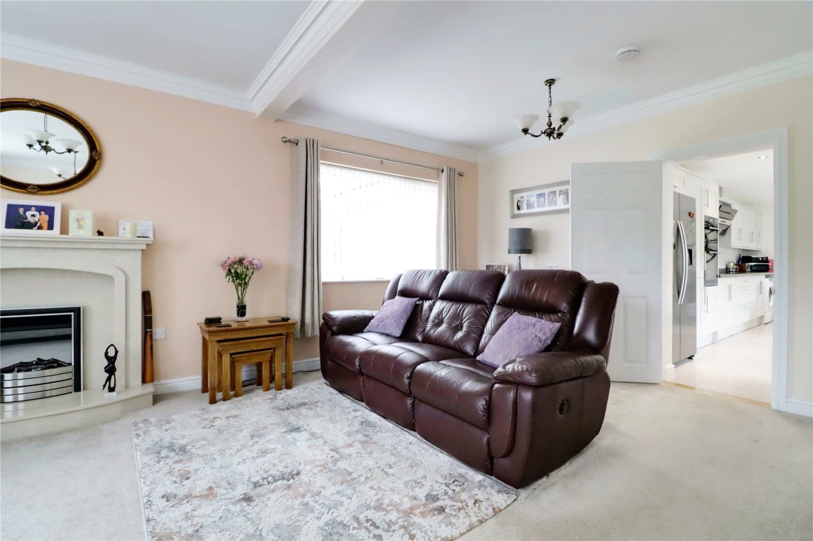 Enjoying three surrounding uPVC double glazed windows, quality polished marble fireplace with inset contemporary electric fire, TV point, wall to ceiling coving and doors through to the kitchen and formal dining room.