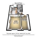 Total Units: 5 × 1‑bed flats (each with kitchen, living room, bedroom, and bathroom)