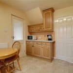 With a rear uPVC double glazed window. The kitchen includes a range of pine fronted low level units, drawer units and wall units with rounded pull handles and a patterned working top surface incorporating a one and a half ceramic sink bowl unit with block mixer tap and drainer to the side with tiled splash backs, space for a free standing cooker, space for an under the counter fridge freezer, continuation of flooring, built-in storage cupboard housing a modern newly fitted gas combi Ideal boiler, plumbing for a washing machine and a hardwood side glazed door allows access through to;