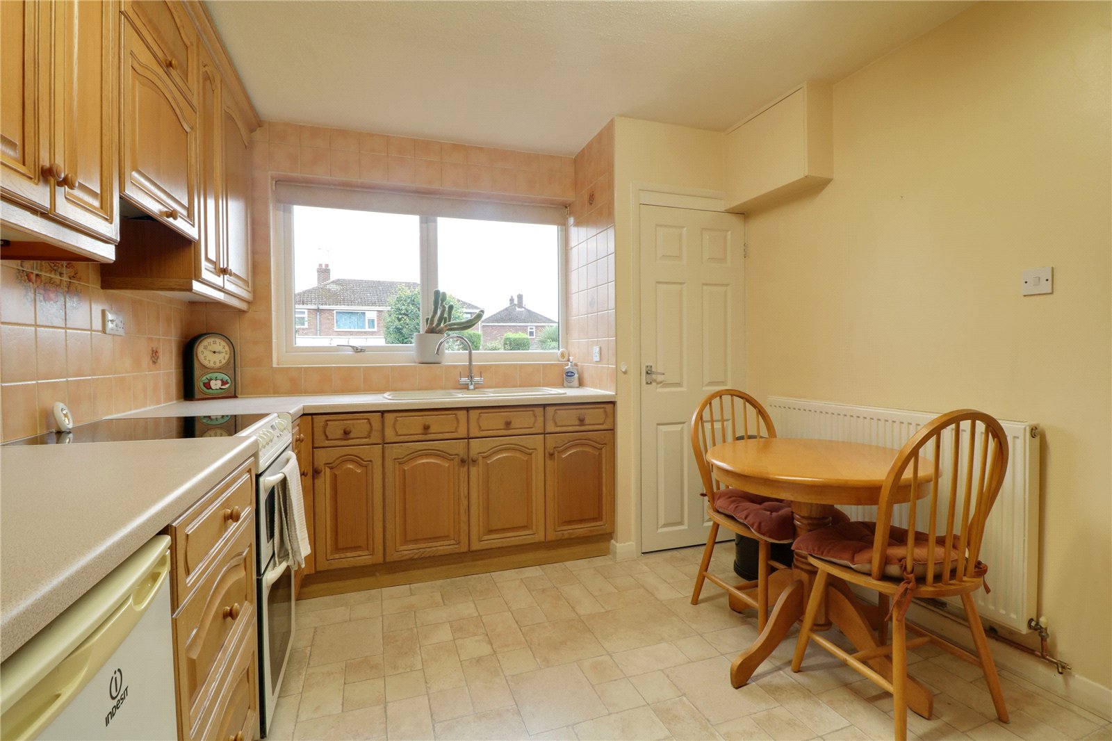 The provides a low maintenance flagged patio seating area with surrounding gravelled borders, surrounding secured fencing. Access leads to the side of the property via a hard standing concrete driveway which provides ample off street parking and allows direct access to a detached brick built garage. Gated access leads to a well kept mature lawned front garden with fully stocked borders and an adjoining driveway with flagged pathway allowing access to the front entrance.