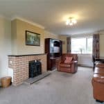 Including a dual aspect with front and rear uPVC double glazed windows, TV input, single wall light, wall to ceiling coving and a feature open live multi burning fire with bricked backing and slate tiled hearth.