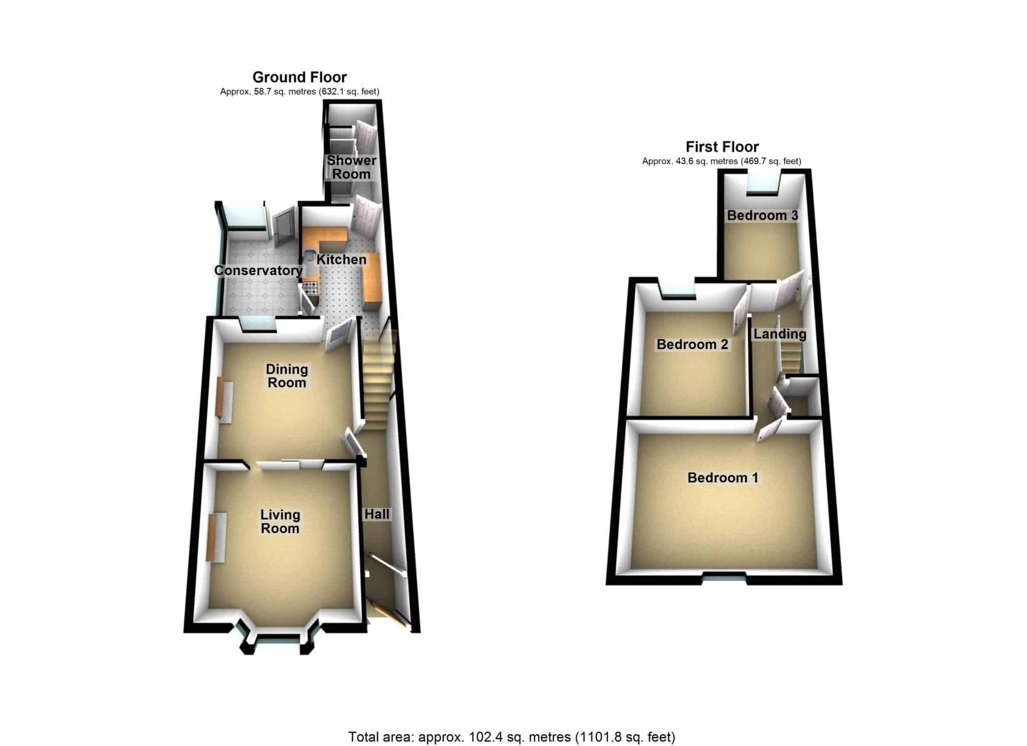 The first floor has a central landing leading to 3 good sized bedrooms. The front provides a pea-pebbled courtyard style garden with the rear garden being of an excellent size and principally lawned. Finished with uPvc double glazing and a modern gas fired central heating system.