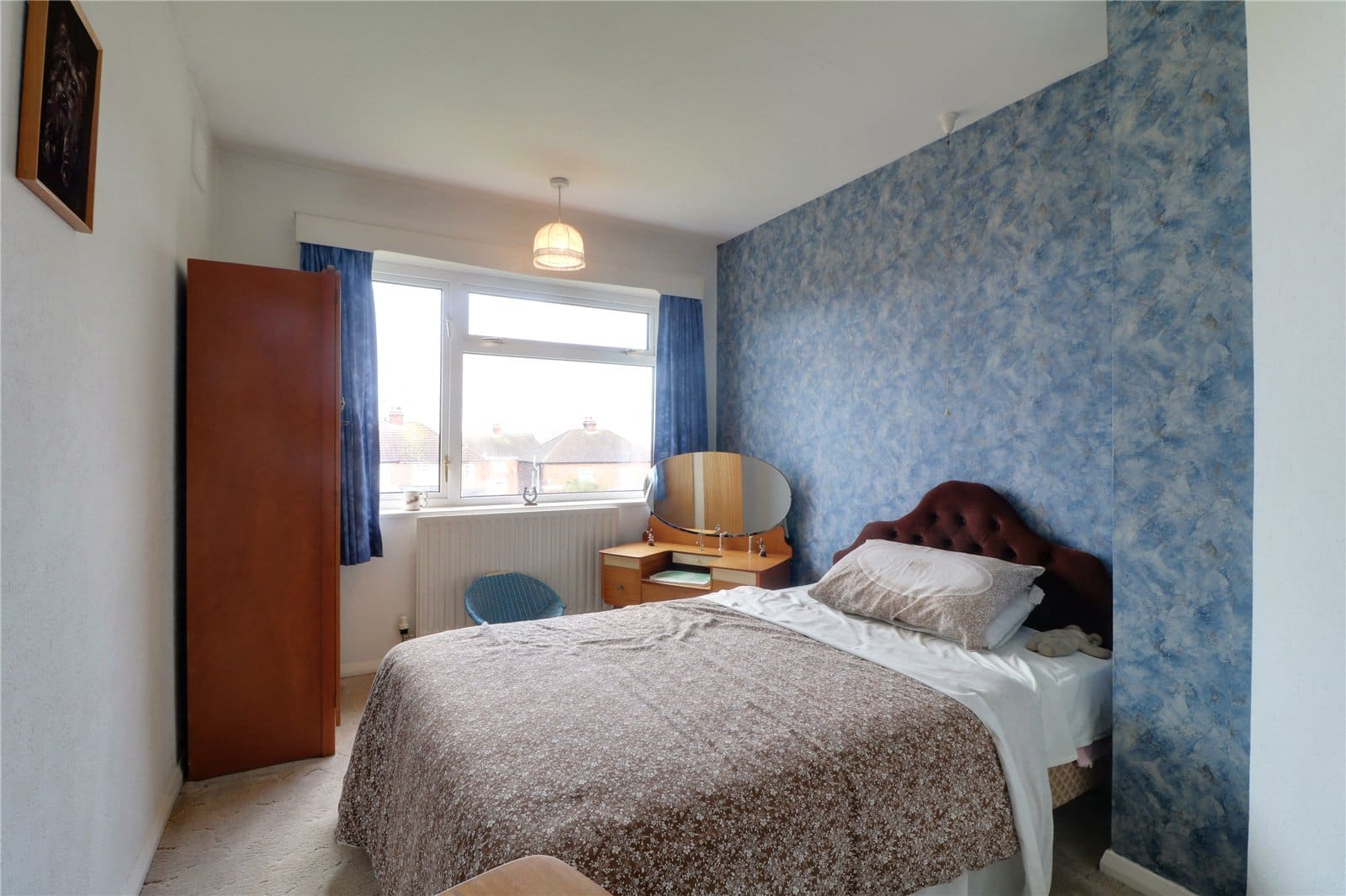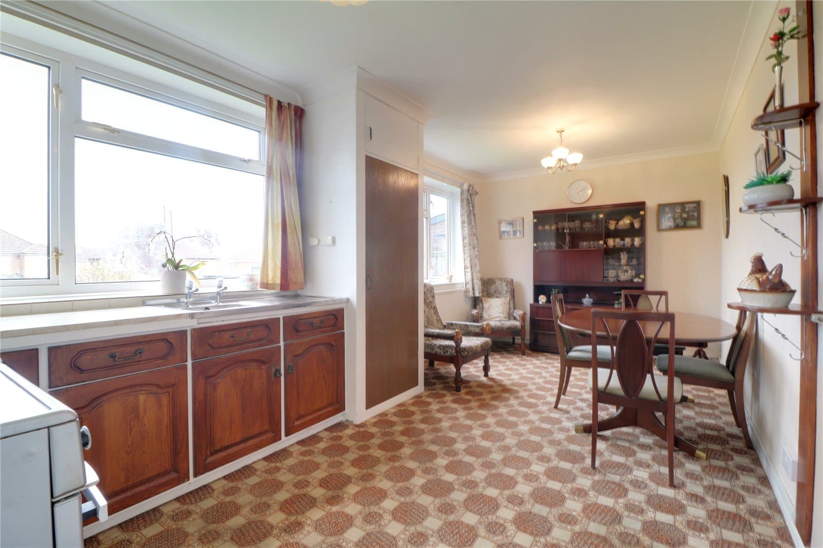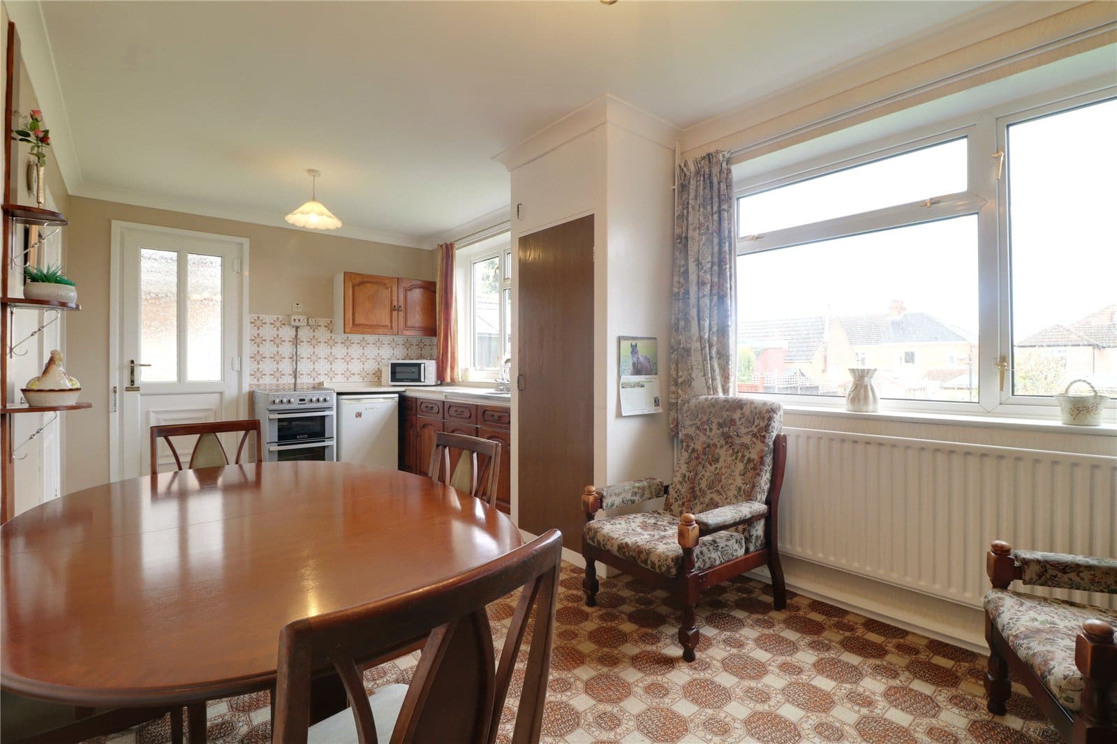 With two rear uPVC double glazed windows and a side uPVC double glazed door allowing access to the rear garden. The kitchen includes low level oak units, drawer units and wall units with a patterned working top surface with a single stainless steel sink unit with block mixer tap and drainer to the side, space for a free standing cooker and undercounter fridge, built-in storage cupboard and wall to ceiling coving.