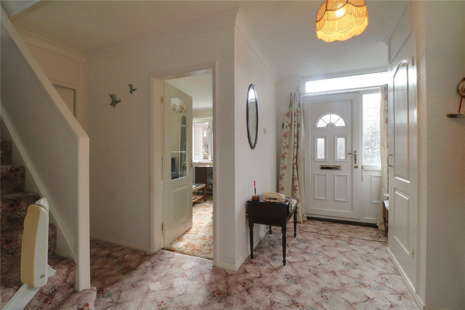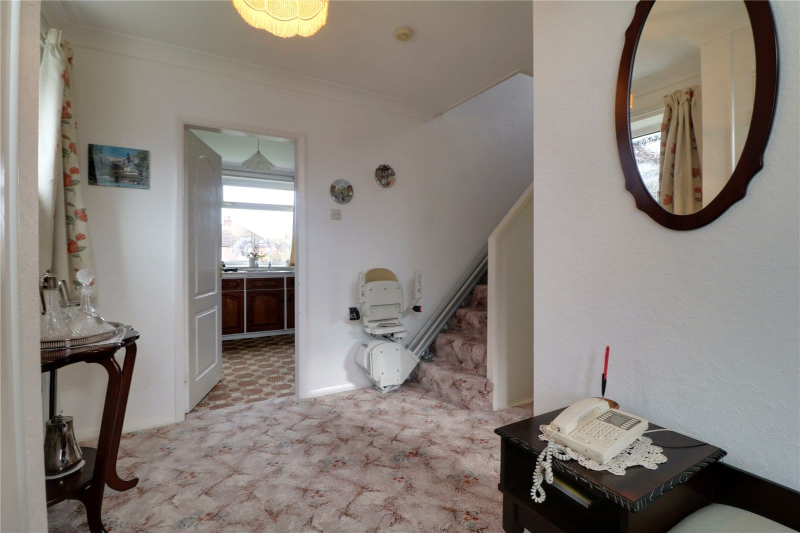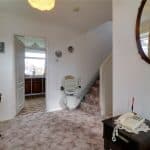 Includes a front uPVC double glazed entrance door with frosted glazing with adjoining side lights, a side uPVC double glazed window, built-in storage cupboard, a single flight staircase leads to the first floor accommodation and an internal glazed doors allows access off to;