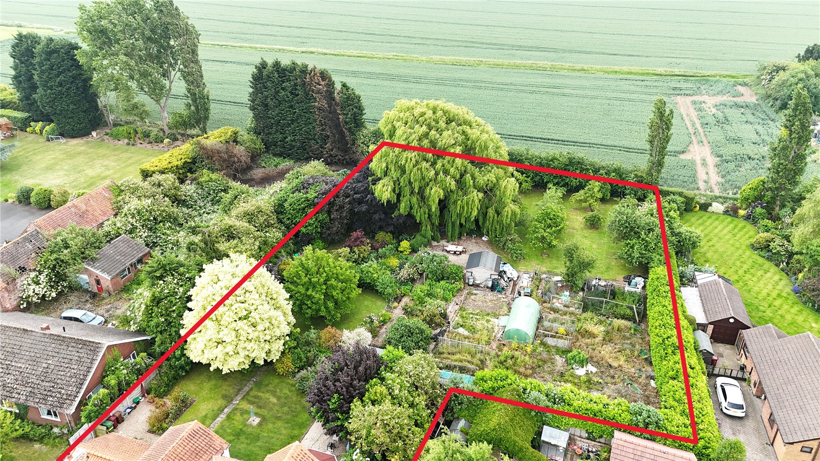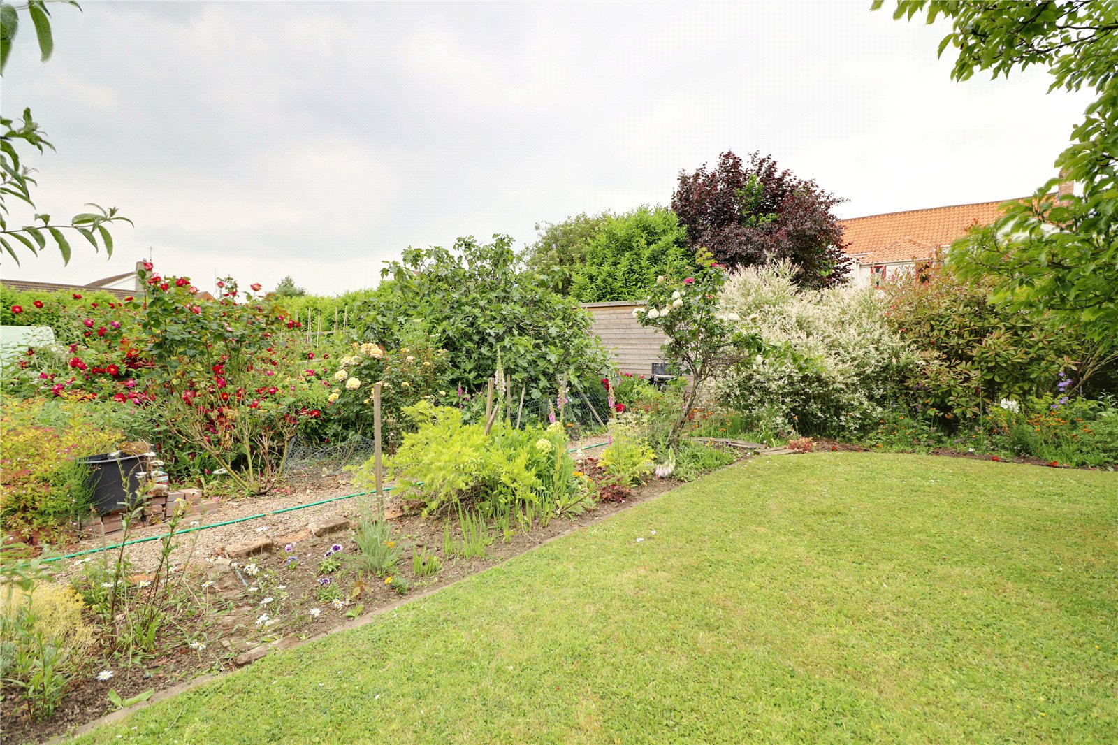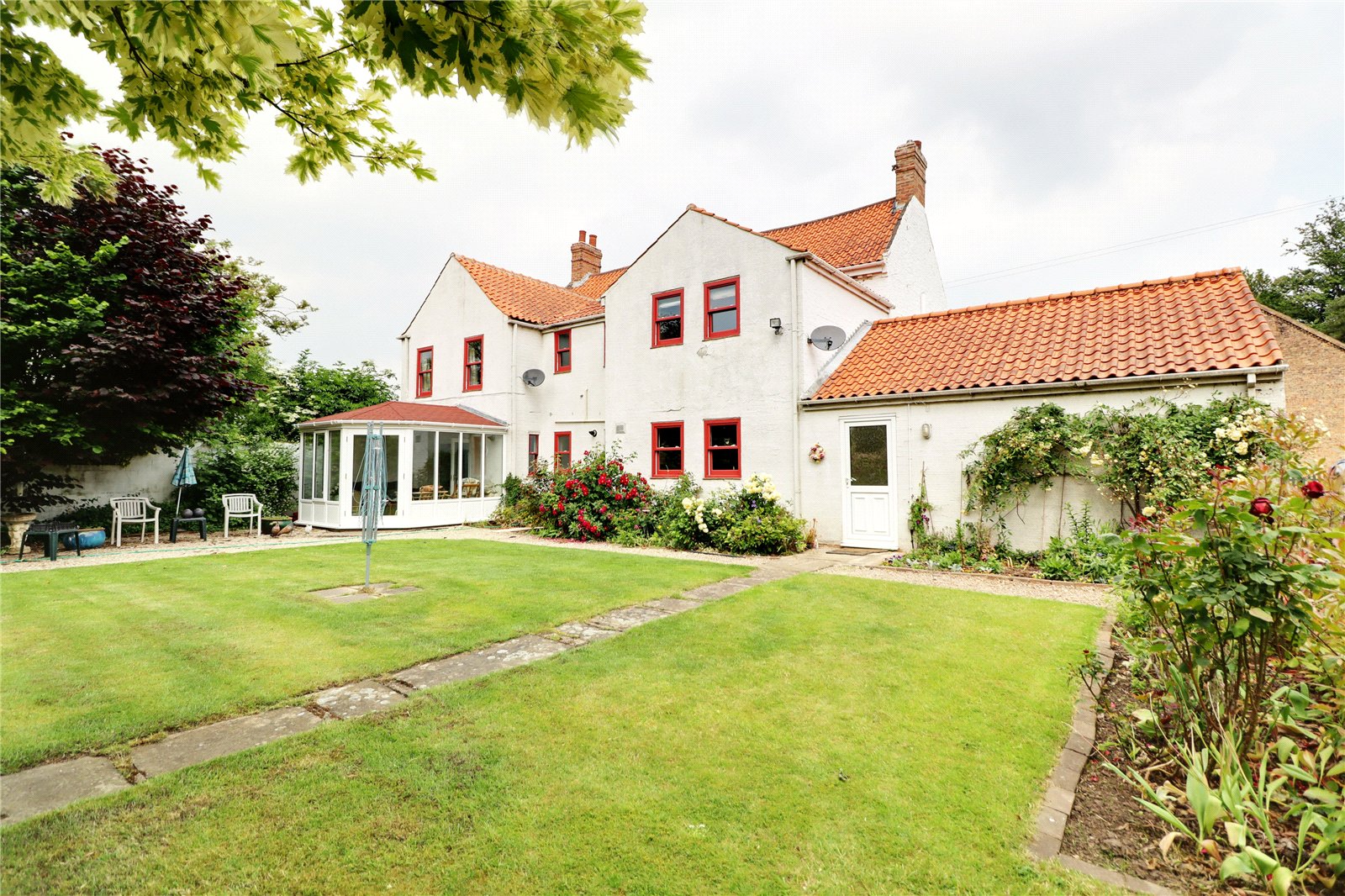To the front the property enjoys a traditional pebbled garden behind decorative iron railing with matching gate with crazy paved access to the front entrance. An adjoining pebbled driveway provides parking for a number of vehicles with direct access to the garaging and with side access providing room and storage for a caravan or motorhome if required with continued access into the rear garden. The private south facing rear garden is of an excellent family size and benefits from open rear aspect onto the countryside, providing many shaped lawned areas with mature borders, a working vegetable garden with adjoining fruit orchard.