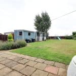 To the front of the property has a deep front hard standing concrete laid and pebbled driveway providing extensive parking for numerous vehicles and is surrounded by mature shrubs and lavender borders. A flagged pathway leads to the entrance with gated access to either side leading to the rear. The south facing rear garden is of an excellent size having an initial full width flagged patio, adjoining lawned gardens, planted borders and houses the store shed and summer house and enjoys excellent open views across rolling countrysides.